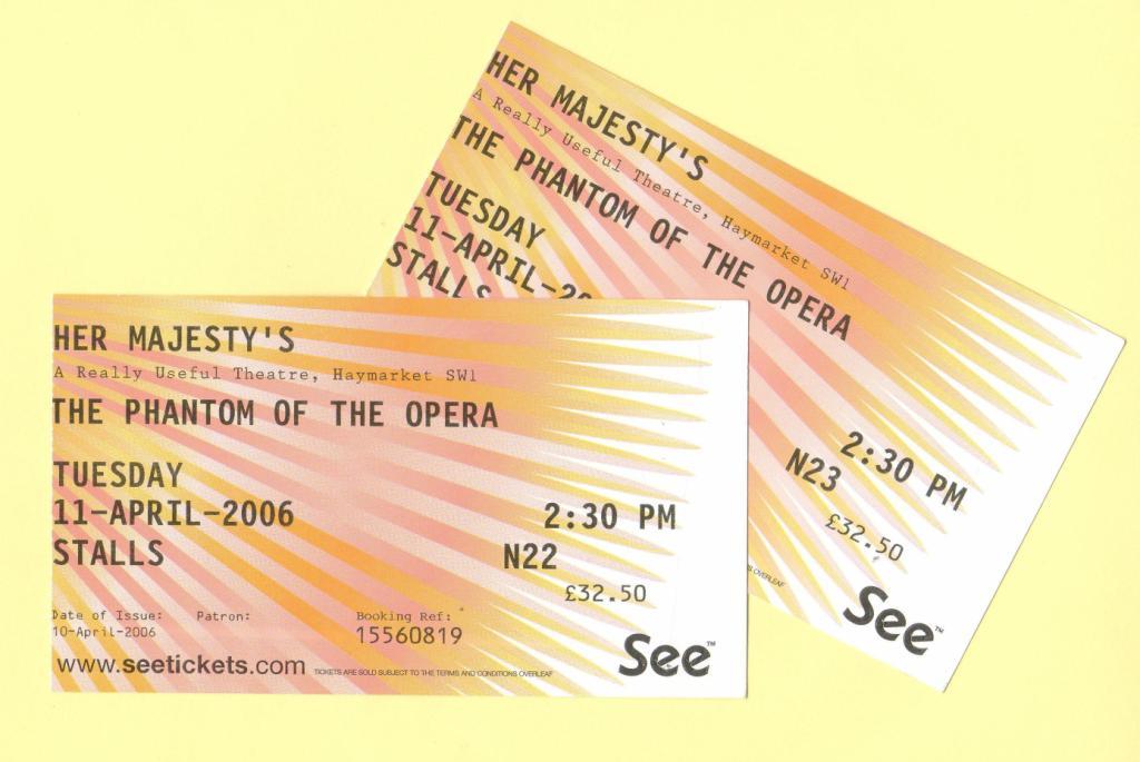 Ohjelmistoon voi tutustua etukäteen netissä. Me päädyimme tällä kertaa, naapurimme suosituksesta, katsomaan Oopperan kummitusta – ja olihan se hieno, mahtavine lavastuksineen! Ja kuten Lontoossa voi – menimme sinne sateisena iltapäivänä suoraan ”turistina”, reppuinemme, sateenvarjoinemme kaikkineen. Vaikka liput ovat arvokkaita ja teatterit vanhanaikaisen upeita, niin niistä voi mennä nauttimaan ”pukeutumatta” sen kummemmin. (Niin ja ne liput, matineaan, ostimme suoraan teatterilta, 2 lippua 65£. Luottokortti kelpasi maksettaessa. Leicester Squaren kojut tarjosivat samaan näytökseen yhtä lippua 65£:lla.)