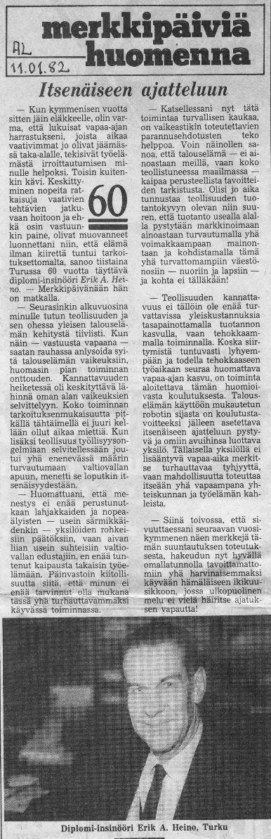 Seuraavassa muutama isästäni aikoinaan julkaistu lehtijuttu: