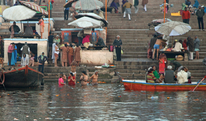 Intian kiertomatkamme viimeinen kohde oli Varanasi. Pyhä kaupunki, jonne intialaiset tulevat kuolemaan, jos vain voivat, ja jossa Ganges-joen rannalla poltetaan kahdella alueella ruumiita aamusta iltaan. Turistit viedään Ganges-joelle veneillä: seuraamaan hindujumalanpalvelusta Äiti Gangesille, joka toistuu joka ilta auringon laskiessa ja aamulla auringon noustessa – seuraamaan hindujen rituaalista peseytymistä – tai vaan pyykinpesua joessa.