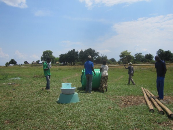 Olympian opas, joka oli tulossa samaan kylään toisen ryhmän kanssa kahden viikon sisällä lupasi kertoa meille miten projektin kanssa kävi. Ja hyvinhän siinä näytti käyneen – oheisena muutama kuva vielä siitä miten säiliötä pyöritetään kylää kohti ja pienestä lahjoitusseremoniasta kylässä.