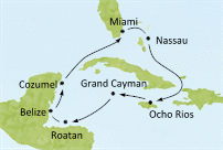 Matka Miamiin (Cozumelista 542 mailia) on sen verran pitkä, että ennen Miamia oli vielä vuorossa yksi meripäivä laivalla: paitsi oleiluun ja pakkaamiseen Pirkko hyödynsi sitä käymällä hierojalla. Illalliselle saattoi pukeutua (me pukeuduimme!) hytteihin kullekin jaettuun lakanaan toogapartyn hengessä – kätevää sikäli, että vaatteet saattoi pakata jo ennen illallista.