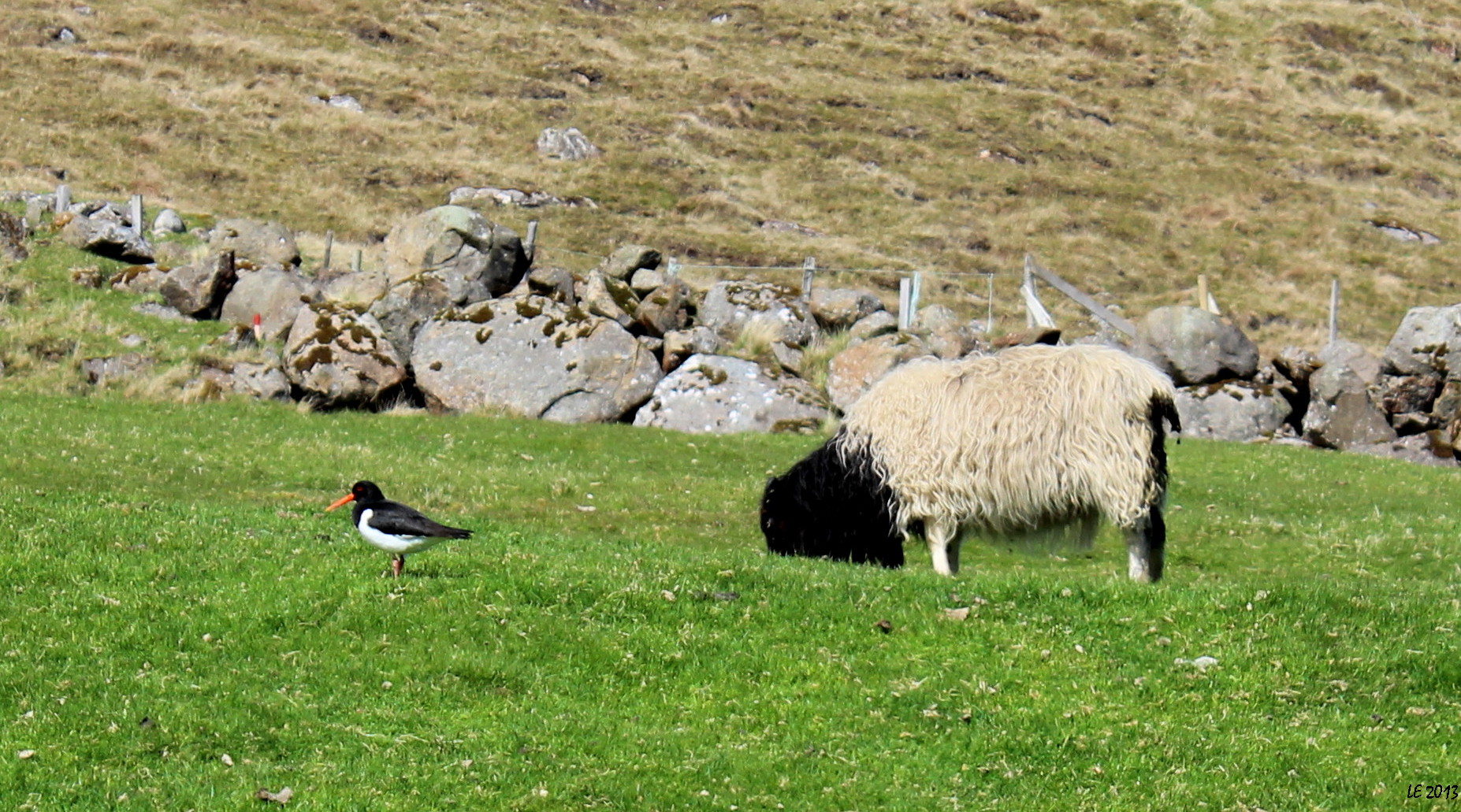 Aamulehden kuvakisasivuilta löysin tätä pienimuotoista tutkimusta tehtäessä myös tämän kivan kuvan Färsaarilta, jossa on sekä meriharakka että lammas.