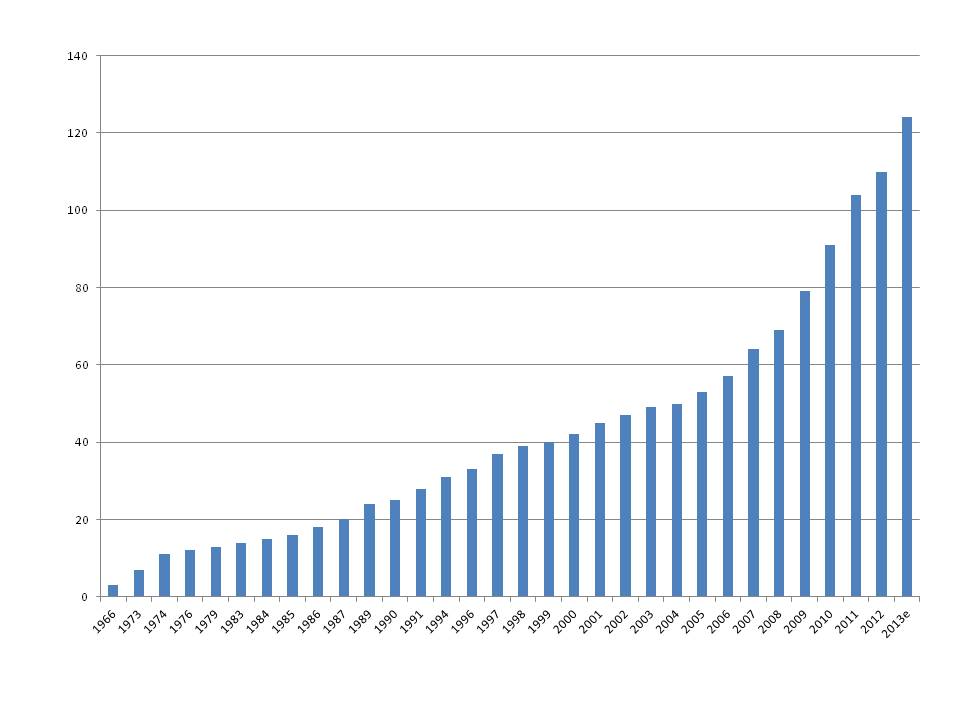 Vuoden 2012 “kuoppa” selittyy sillä, että ensimmäinen tavoite, 100 “TCC-maata” tuli täyteen vuonna 2011 ja sen jälkeen teimme vaihteeksi muutaman matkan pisteitä laskematta!