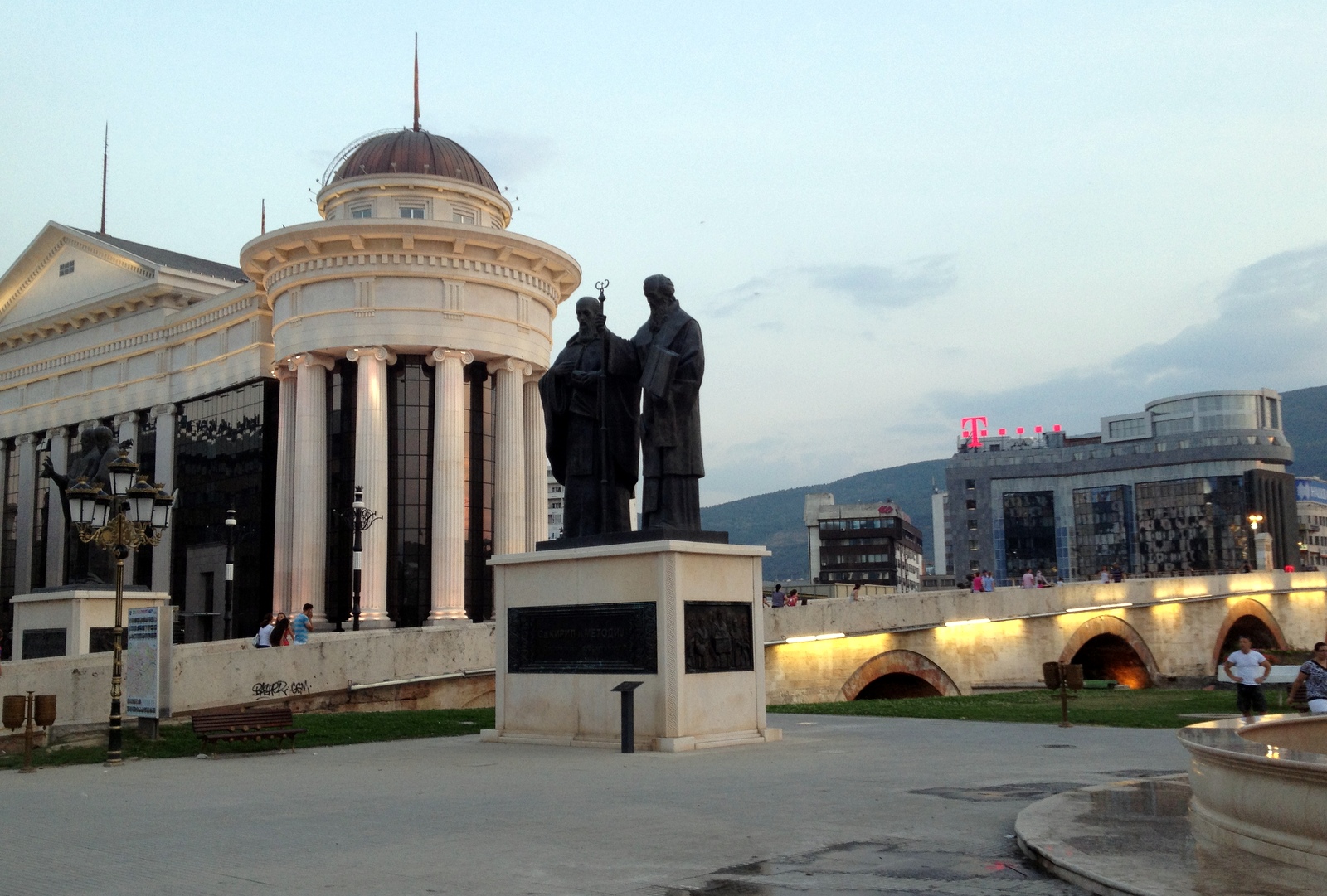 Makedonian Skopjessa törmäsimme jopa kyrillisten kirjainten historiaan Kyrillos & Methodios -patsaan muodossa – kun matkaoppaassa mainittiin näiden herrojan keksineen kyrilliset kirjaimet, niin pakkohan se oli tarkistaa Wikipediasta.
