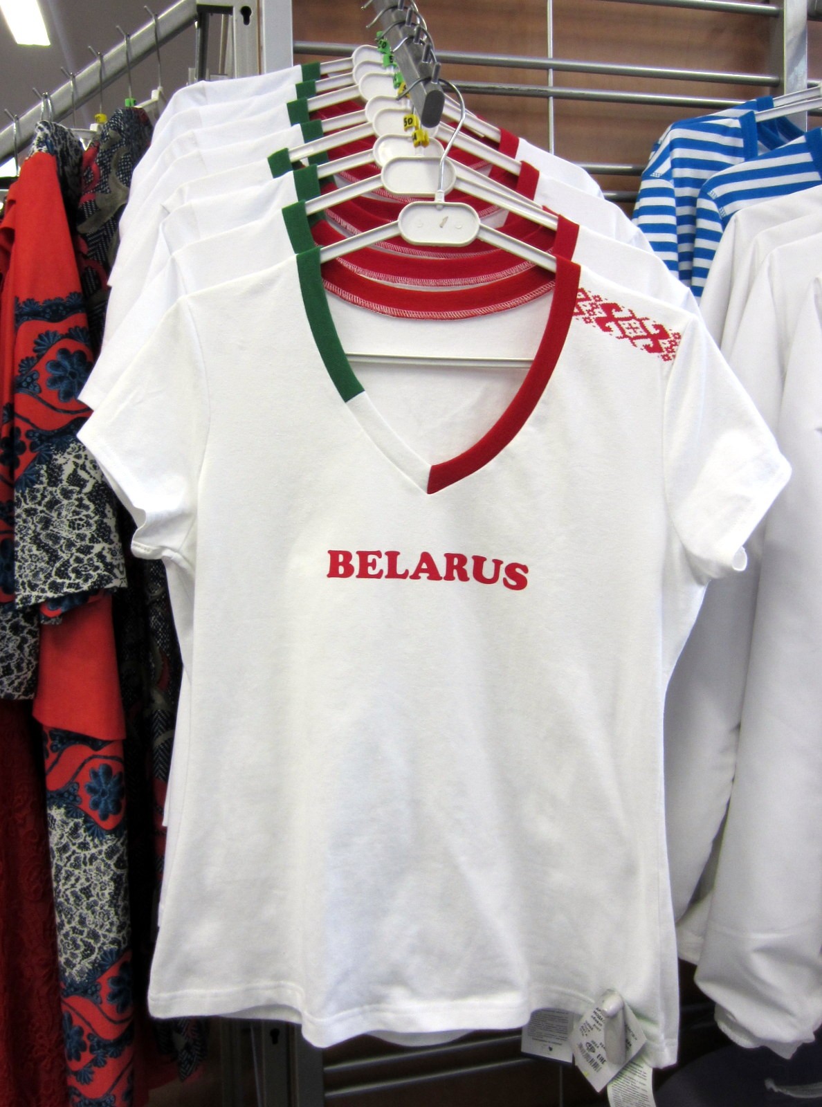 Shoppailuun emme varsinaisesti panostaneet, mutta kaupungissa on useampia ostoskeskuksia ja Gum-tavaratalo keskeisellä paikalla. Tavaratalosta ostimme muutaman paketin jääkiekkokisasuklaata – ja “ihastelimme” Neuvostoaikaista arkkitehtuuria (ja tarjontaa). Keskustaa lähin ostoskeskus on ehkä maanalainen ostoskeskus Itsenäisyydenaukiolla – sisäänkäynti löytyy esimerkiksi punatiilisen kirkon vierestä. Myös Zamak -ostoskeskus näytti olevan melko lähellä – oppaamme sitä kevyesti suositteli, muttemme käyneet siellä.