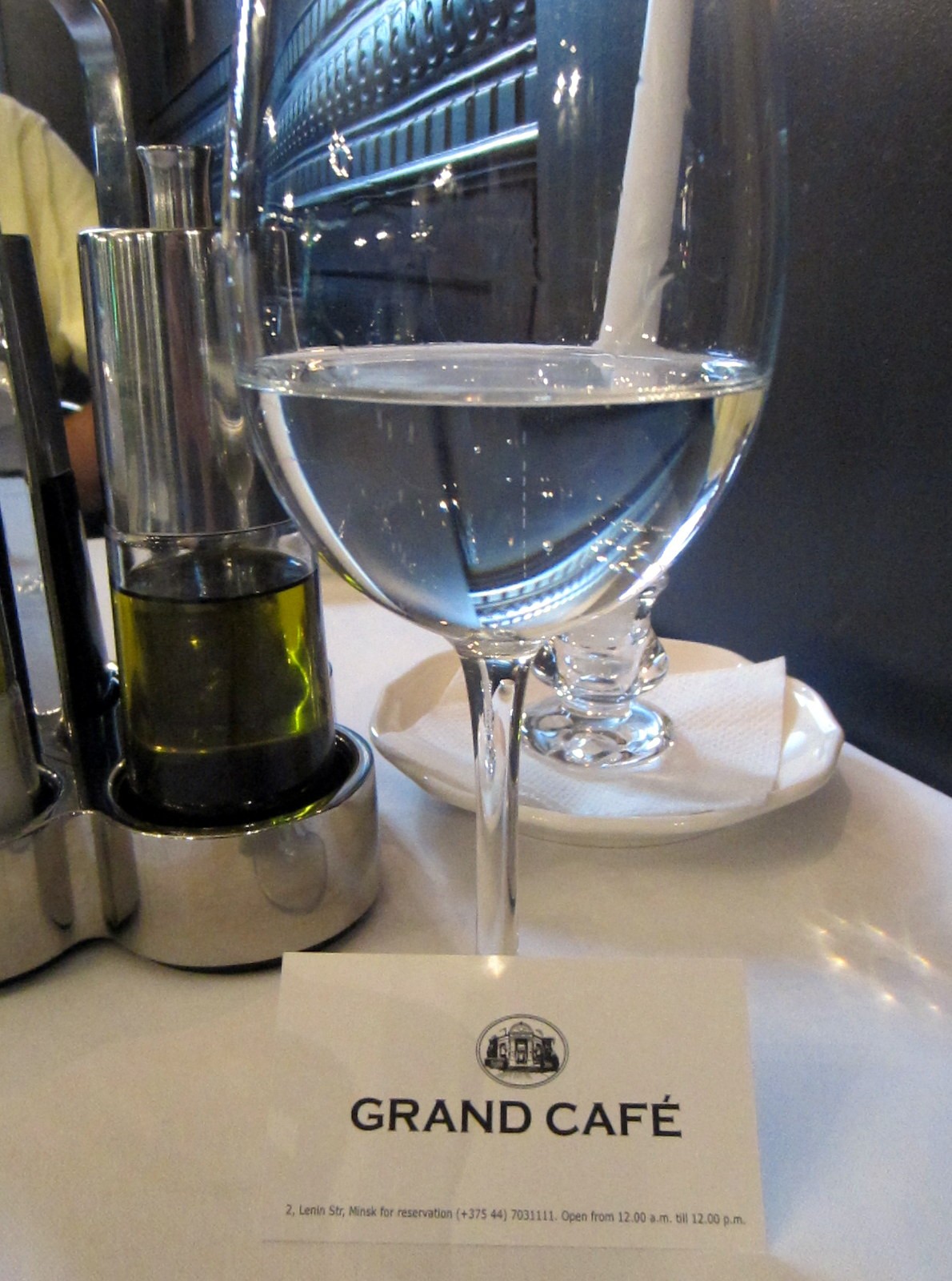 - Grand Cafe Minsk – Travelloverin blogissaan (ja Maailmanmatkaajien kokouksessa) vuolaasti ylistämä vanha tyylikäs kahvila-ravintola, jossa ruoka ja palvelu tosiaan olivat erinomaisia, hintataso minskiläisittäin melko korkea (mutta hinta-laatusuhde silti kohdallaan). Tunnelmaltaan ja miljööltään jäi minusta kyllä toiseksi vaikka Budapestin Cafe New Yorkille tai Buenos Airesin Cafe Tortonille, mutta ihan kiva paikka