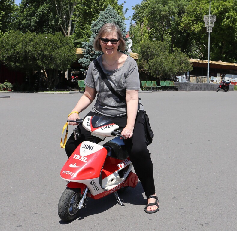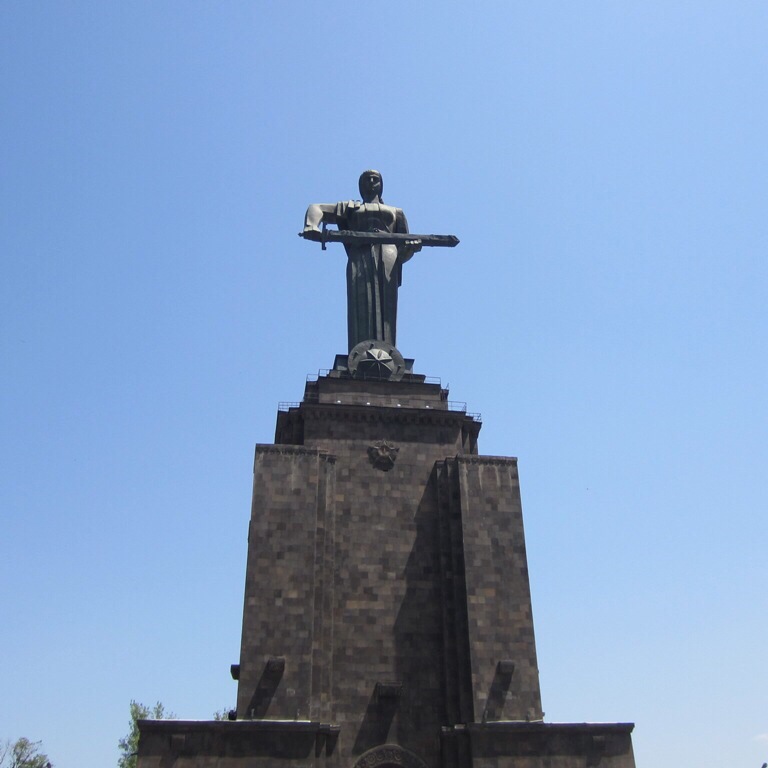 Äiti Armenia -patsasta lähdemme katsomaan jo autolla. Ylhäällä kukkulalla miekalla varustautunut nainen katsoo Turkin suuntaan, Ararat-vuorta kohti valmiina puolustamaan maataan. Myös kukkulalle kerätyt vanhat lentokoneet, panssarivaunut ja ohjukset osoittavat kaikki kohti Turkkia.