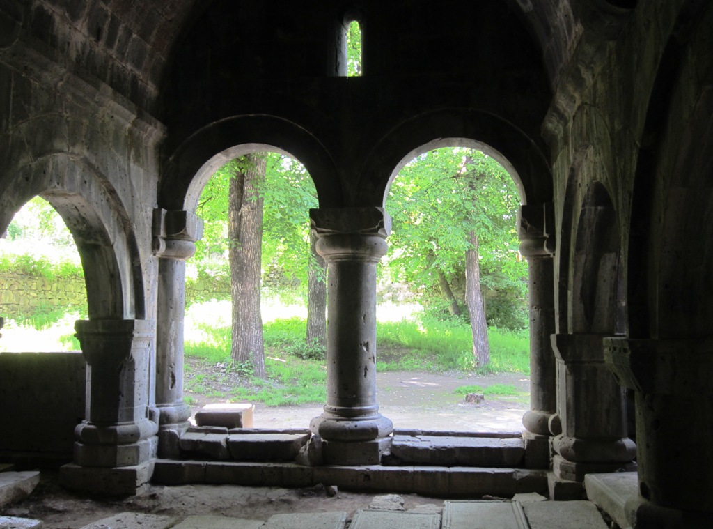 Sevan-järveltä lähdettyämme istuimme taas autossa lähes pari tuntia Armenian pomppuisilla, mutkaisilla ja vuorenrinteitä ylös ja alas kiemurtelevilla teillä päästäksemme Sanahin ja Haghpatin luostareihen. Unescon maailmanperintökohteista nämäkin, tai siis yhdessä muodostavat sellaisen. Nämä olivat kooltaan isompia kuin monet aikaisemmin näkemämme, mutta ehkä luostarikiintiömme alkoi jo olla ainakin Haghpatin kohdalla täyttymässä, kun parhaiten mieleeni jäivät rakennuksissa ja niiden liepeillä lentelevät lukuisat pääskyset. Tarina isästä ja pojasta, jotka nämä rakensivat, oli sekin melko tavanomainen.