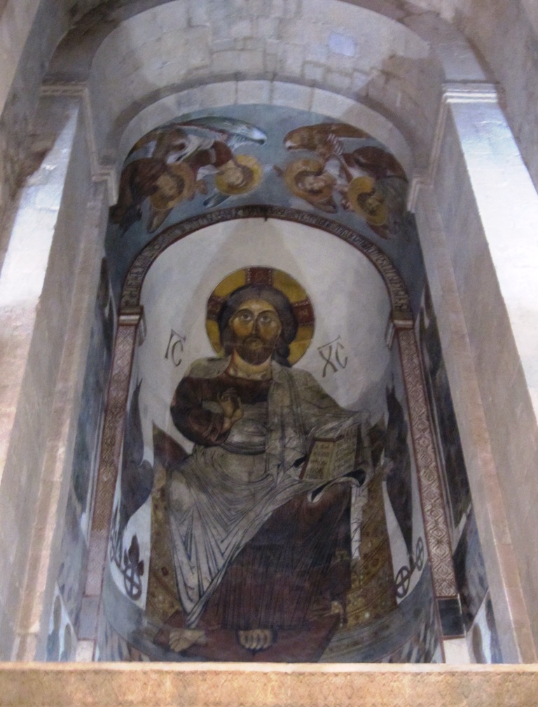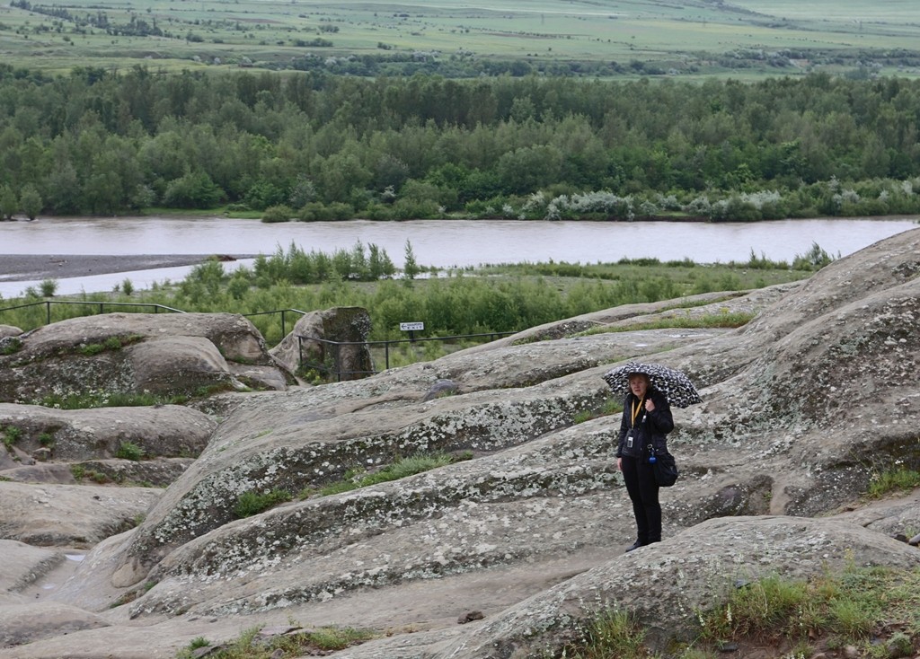 Uplistsikhen luolakaupunki tuo vähän mieleen Petran, ehkä siksi, että siellä äskettäin kävimme, mutta tämä on alkeellisempi (ja pienempi) versio, täällä ei ole hienoja fasadeja, mutta jonkinlainen teatteri täältäkin löytyy. Ja salainen käytävä joelle, joka sodissa mahdollisti kaupungin puolustamisen pitempään kuin muuten olisi ollut mahdollista. Sateen liukastamilla kallioilla kiipeily tosin on hiukan haastavaa! Mutta sade innoitti meidät myös katsomaan kokonaan paikkaa esittelevän videon, joka oli itse asiassa ihan kelvollinen – kauniilla säällä olisimme saattaneet sen ohittaa kevyemmin.