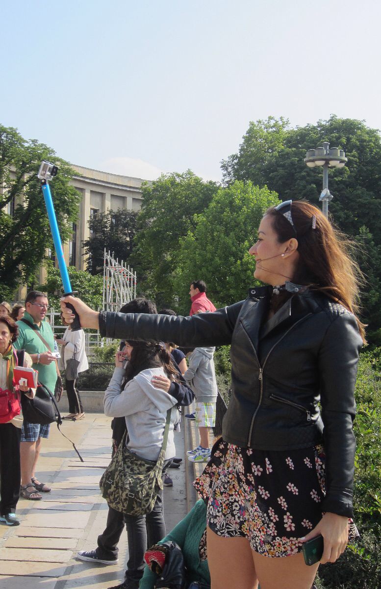 Aloitimme Trocaderolta, halusimme kuitenkin nähdä Eiffel-tornin koko komeudessaan ja Trocadero on siihen paras paikka. Uutta oli se selfie-kuvaajien määrä, joka täytti näkymän. Osalla oli ihan erityisiä laiteviritelmiä itsensä kuvaamisen avuksi!