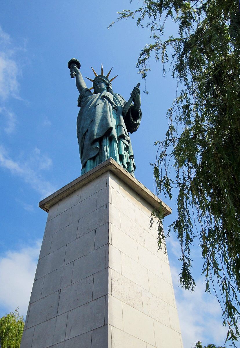 Ile des Cygnes on lähes kilometrin pituinen hyvin kapea saari Seinessä: lenkkeilijöiden ja koiranulkoiluttajien suosikki. Vehreä keidas kaupungin sydämessä, jonka puiden reunustamaa kävelytietä kävelee ihan ilokseen. Vapaudenpatsaalta oli lisää selfie-kuvaajia. Tosin vähemmän kuin Trocaderolla.