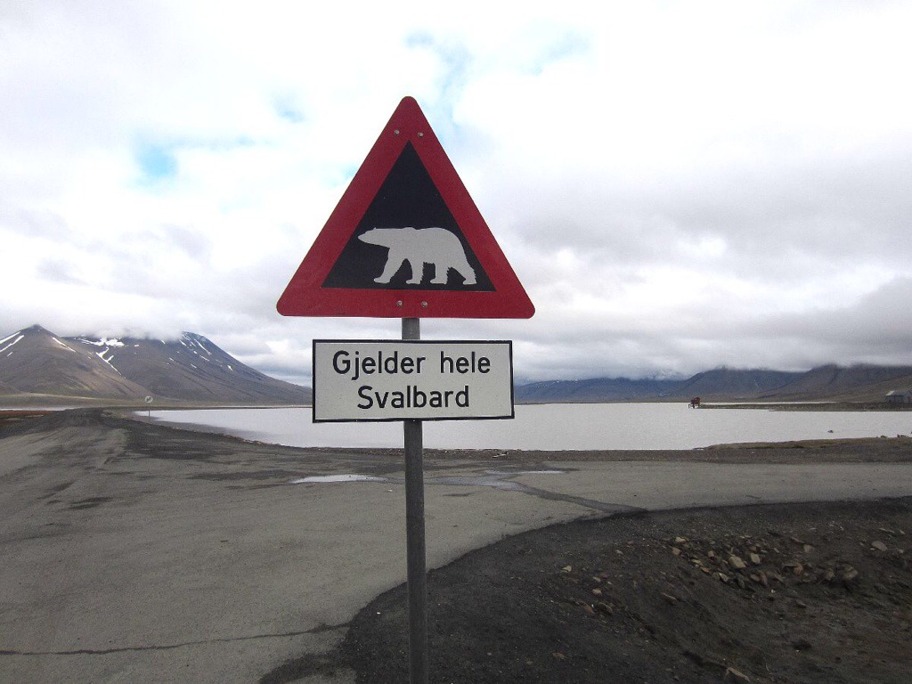 Luonto käykin välillä melkein päälle. Bussi pysähtyy tien laidalle, jotta voimme kuvata jääkarhuvaroitusmerkin ja tiira tien laidalla ei jostain syystä pidä minusta. Vedän takin hupun ylös suojatakseni itseäni – onneksi, sillä kohta tiira jo iskee nokallaan, huppuuni.