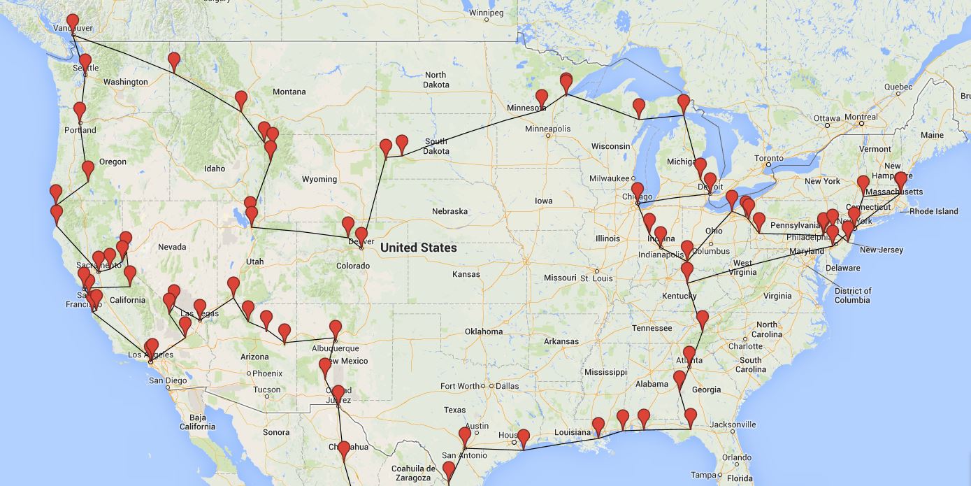 Reitti rakentui apuraha-anomuksessa lueteltujen kohteiden ympärille, mutta niiden muodostaman rungon ympärille on mielestäni loistavasti rakennettu reitti, joka kiersi kaikki Yhdysvaltojen tärkeimmät kaupungit ja nähtävyydet.