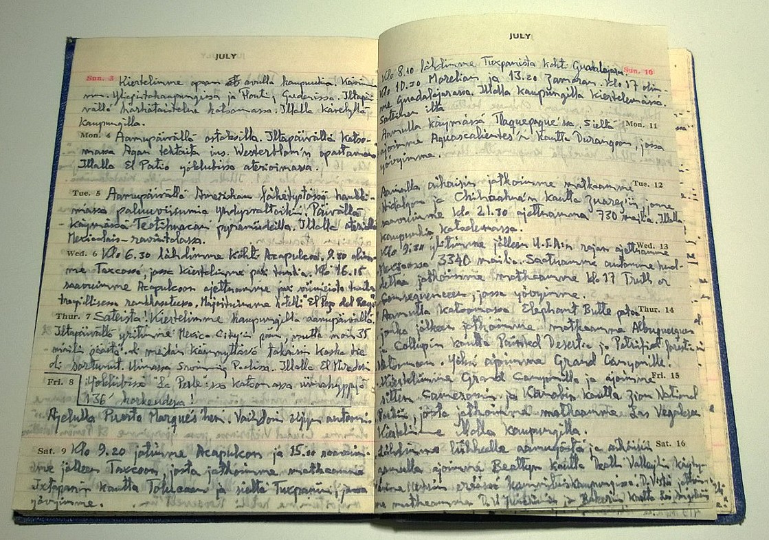 Tiesin heidän tehneen sellaisen ja heidän kertomuksistaan erityisesti Death Valley, kansallispuistot kuten Yellowstone karhuineen ja Mexico City ja Acapulco olivat jääneet mieleeni nuoruudestani, mutta nyt palasin heidän matkaansa isäni päiväkirjojen ja muiden tältä ajalta olevien dokumenttien avulla ja yllätyin matkan laajuudesta – 28 775 kilometriä 53 päivässä!