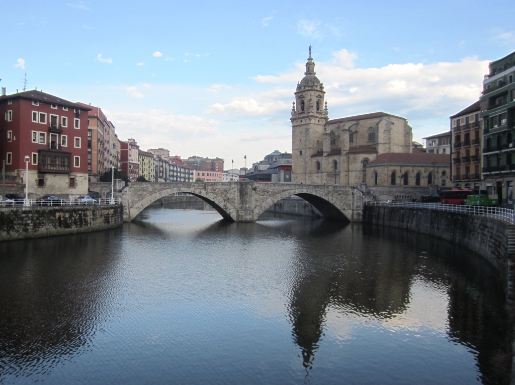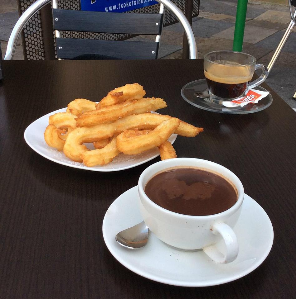 Sunnuntaiaamun aloitimme kävelyretkellä Bilbaon Vanhaan kaupunkiin – ihan Albatrosin oppaan johdolla. Ensimmäisen Bilbaon päivämme retket teimme omatoimisesti, mutta nyt liityimme kiltisti ryhmään. Seuraisimme Nervión-jokea San Antónin sillalle ja kirkolle ja bongasimme kaupungin vanhimman sillan susikuvat, jotka ovat kaupungin vaakunassakin. Atxurin rautatieasemalla kerrattiin vuoden 1983 tulvaa ja opimme myös, että näinkin sisämaassa, yli 20 km mereltä, vuoroveden vaihtelu on suurimmillaan 6 metriä. Vanhassa kaupungissa katsastimme muutaman kirkon, aukion ja museon. Plaza Nuevon pienet baarit ja markkinat vaikuttivat mielenkiintoisilta, mutta ryhmämme jatkoi kukkamarkkinoiden suuntaan (eivät olleet mitenkään erityiset). Kierroksen päätyttyä palasimmekin nopeasti takaisin Plaza Nuevolle ja ehdimme nauttimaan tämän Espanjan-matkan ensimmäiset churrot paksun suklaan kanssa. Ajoittain nautittuna oikein nautinnollinen sunnuntaiaamun kevyt välipala!