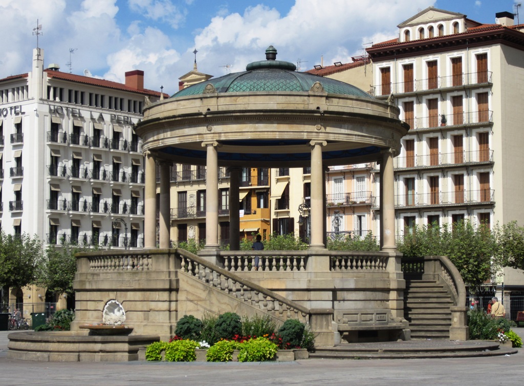 Sitten olikin jo aika jättää Bilbao taakse ja suunnata kohti Pamplonaa, 160 km eli pari tuntia bussissa ja maakunta vaihtui Baskimaasta Navarraan. Pamplonassa Albatrosin hotellivalinta meni ojasta allikkoon – osoittautui, että Bilbaon hotellin sijainti kilometri Vanhasta kaupungista oli ihan keskustassa – Pamplonassa majoitumme ostoskeskusalueelle 4 km keskustasta! No, iltapäivällä oli kuitenkin vielä tarjolla opastettu retki keskustaan ja retken jälkeen vielä hiukan vapaa-aikaakin siellä, joten toimihan sen näinkin. Vaikka jotenkin ajatus illallisesta jossain Pamplonan keskustan ravintolassa tuntui houkuttelevammalta kuin ruokalaillallinen ostoskeskuksen liepeillä.
