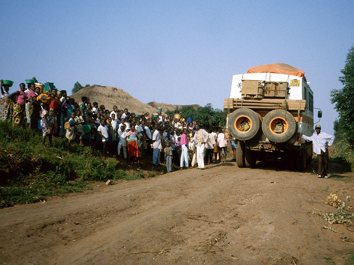 When the group finally came to the border of Central Africa it was closed and when they anyway crossed it, they were escorted to the border with Cameroon. This part of the trip was slowed down by the constant need to fix the police cars. The mechanic in the truck had again much to do. As Katja had run out of holiday and could not get a visa to Nigeria, she returned to Europe from the Douala in Cameron.
