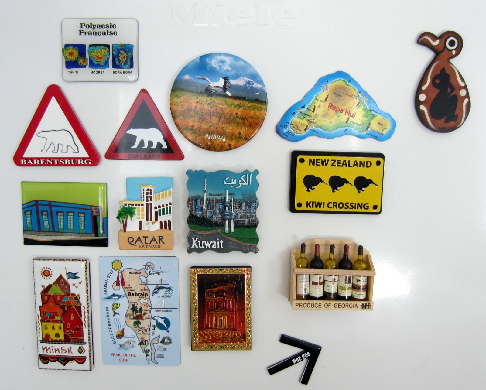 Matkalta palattuamme uusimmat magneetit saavat jonkin aikaa oleilla jääkaapin ovessa, mutta sitten ne saavat väistyä uusien tieltä omaan laatikkoonsa.