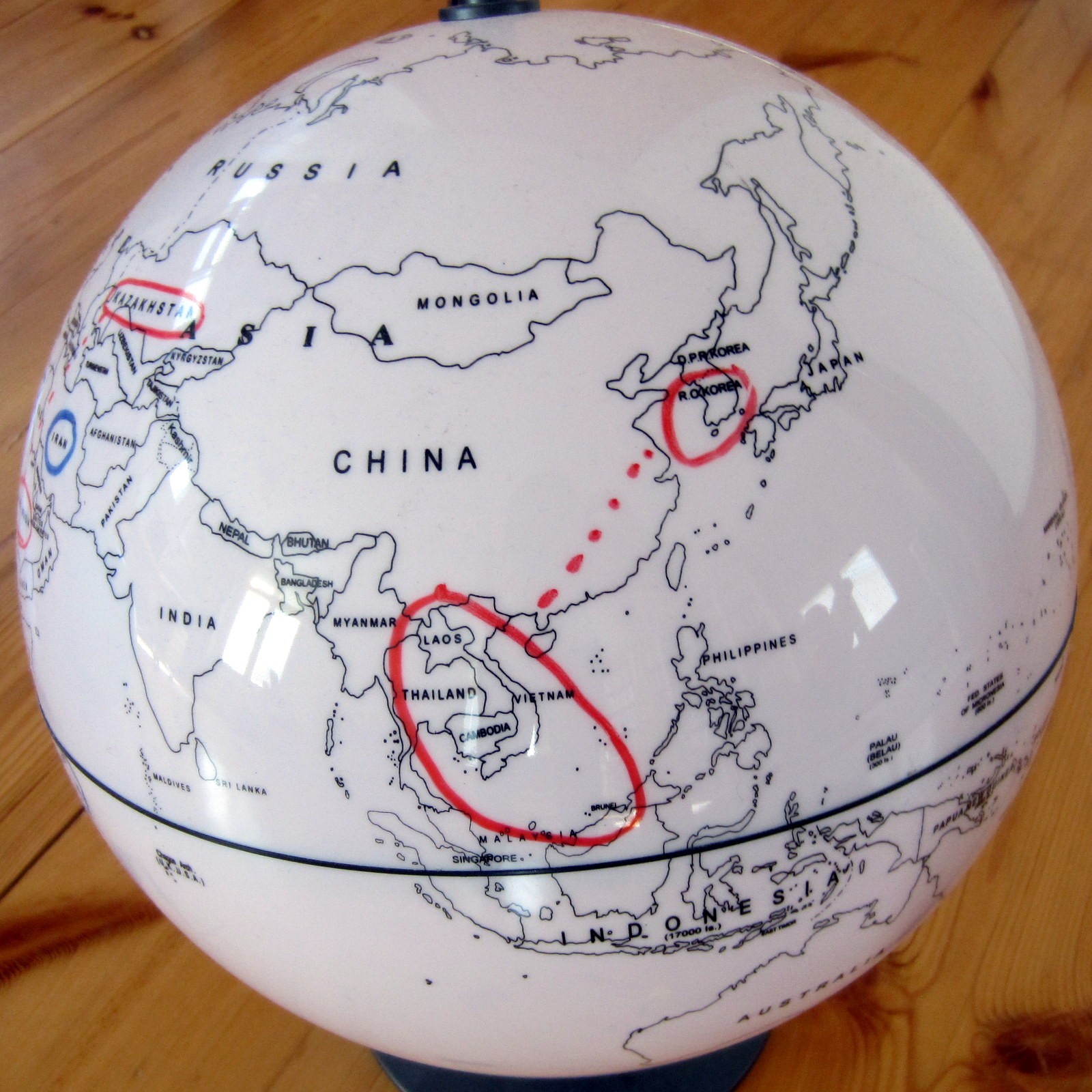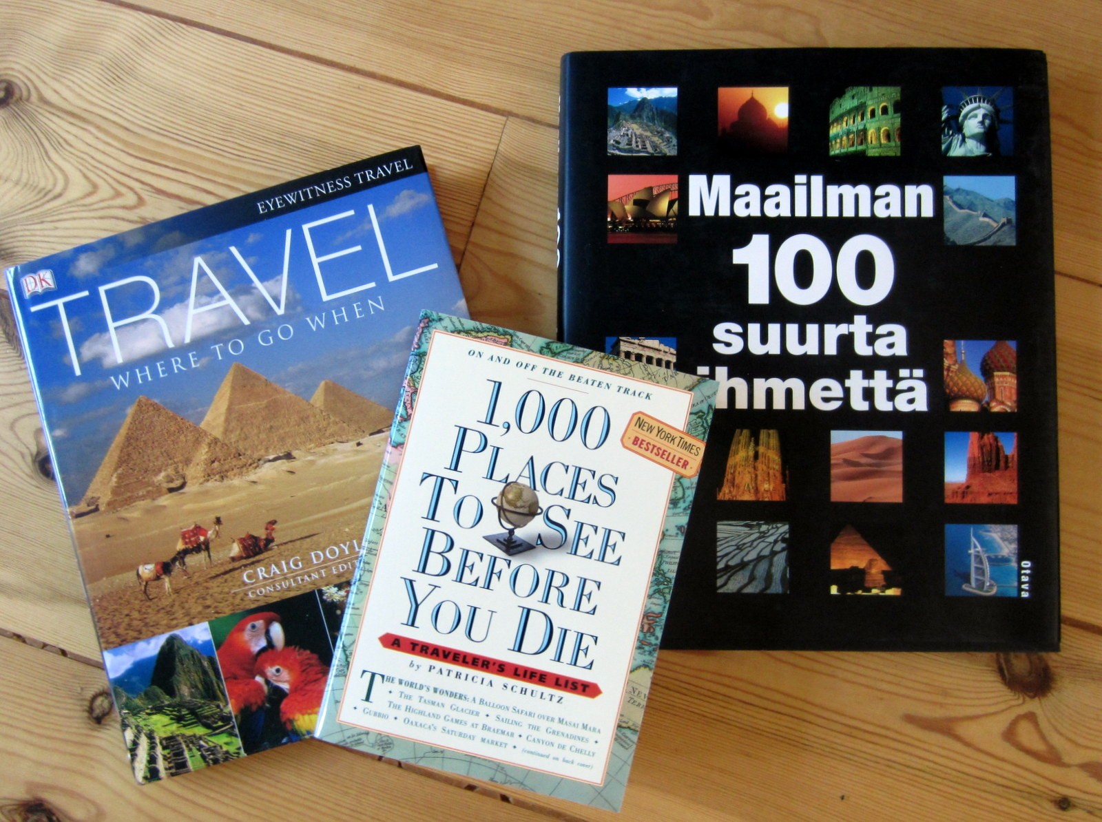 Hetimmiten kotiin palattauamme voikin sitten aloittaa taas seuraavan matkan suunnittelun. Suunnittelun apuna käytämme – netin lisäksi – karttapalloja ja joitakin kirjoja.