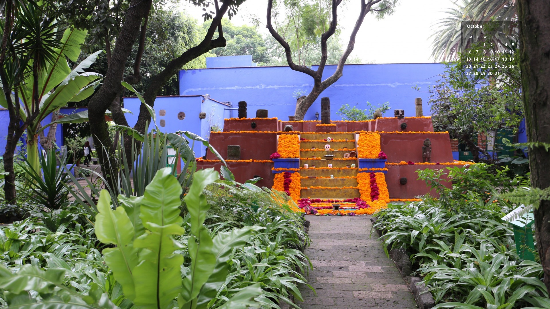 Lokakuun kuva on Frida Kahlon talon pihalta Mexico Citystä. Meksikossa kävimme viime vuoden lokakuussa osana loka-marraskuussa tekemäämme maailmanympärimatkaa ja kun olimme käyneet kaupungissa aikaisemminkin valitsimme tarjolla olleen “peruskaupunkikierroksen” meille räätälöidyn retken kaupungissa Tours by Locals -järjestön kautta, painottaen sitä erityisesti Diego Riveran ja Frida Kahlon maisemiin.