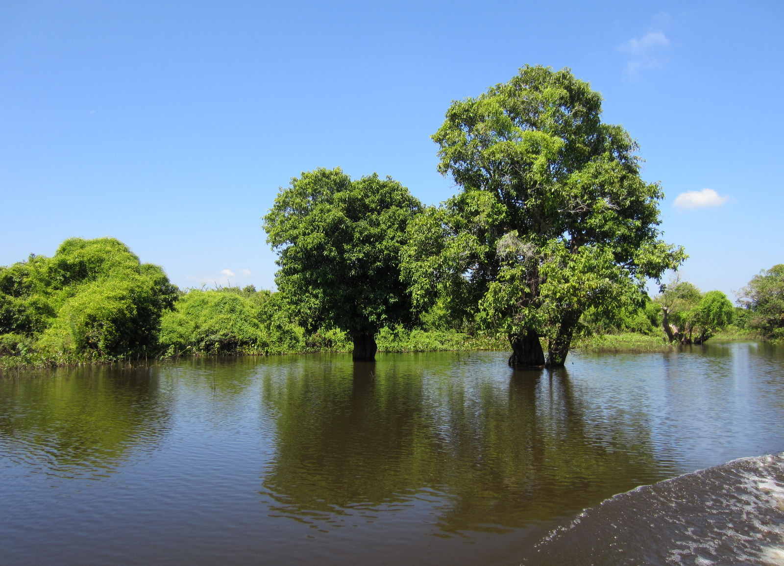 Lähdemme järvelle jonkinlaisesta satamasta, vesibussin tapaisella ja näemme aluksi kapeassa salmessa lähinnä vedessä kasvavia puita ja vesihyasinttia kaikkialla. Salmen avauduttua hiukan laajemmaksi vesialueeksi saavumme kylään, jossa on kyläläisten asumuksia, kauppoja, kristitty kirkko ja buddhalaistemppeli ja lähetysasema.