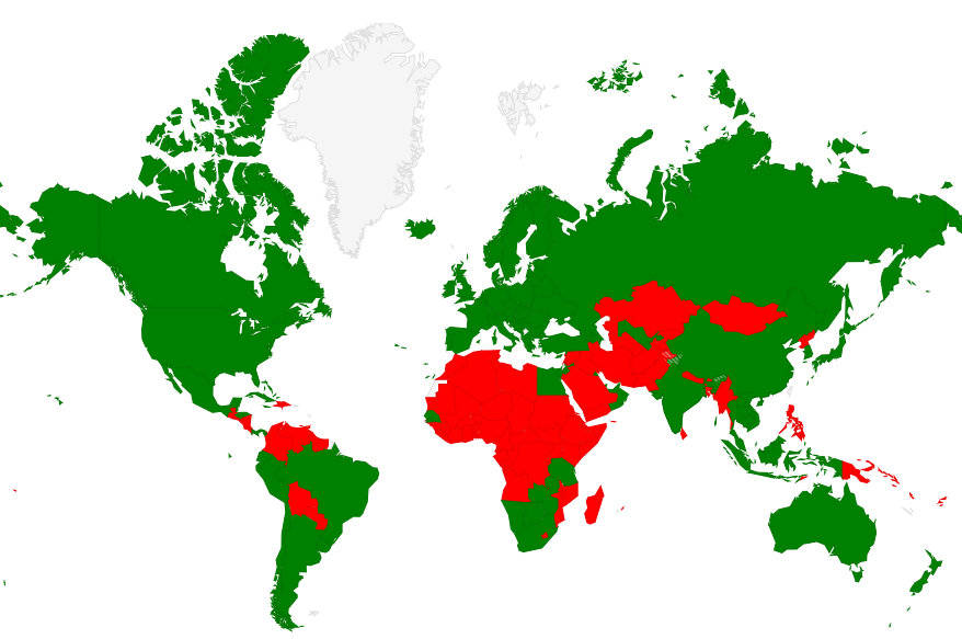 Huh. 100 maata on kyllä paljon. Tein kännykkäappsilla vastaavanlaisen kartan omista maistani, oli kyllä reilusti enemmän punaista kuin vihreää :)