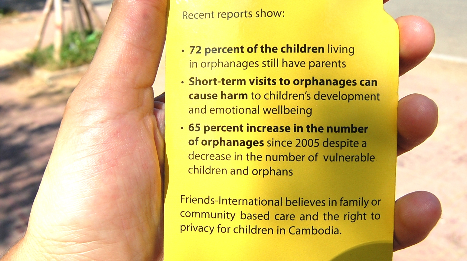 Kuin vastauksena kysymykseemme minne ne lapset lähtevät lomalla ilmoitus kertoi, että pääosalla orpokoteihin päätyneistä lapsista on ainakin toinen vanhemmista vielä elossa ja orpokotien tukemisen sijaan olisi parempi tukea perheitä siten, että he voisivat itse huolehtia lapsistaan. Siinä kerrottiin myös, että orpokodeissa olevien lasten määrä on (Kaakkois-Aasiassa) kasvussa, vaikka orpojen lasten määrä on vähentynyt.