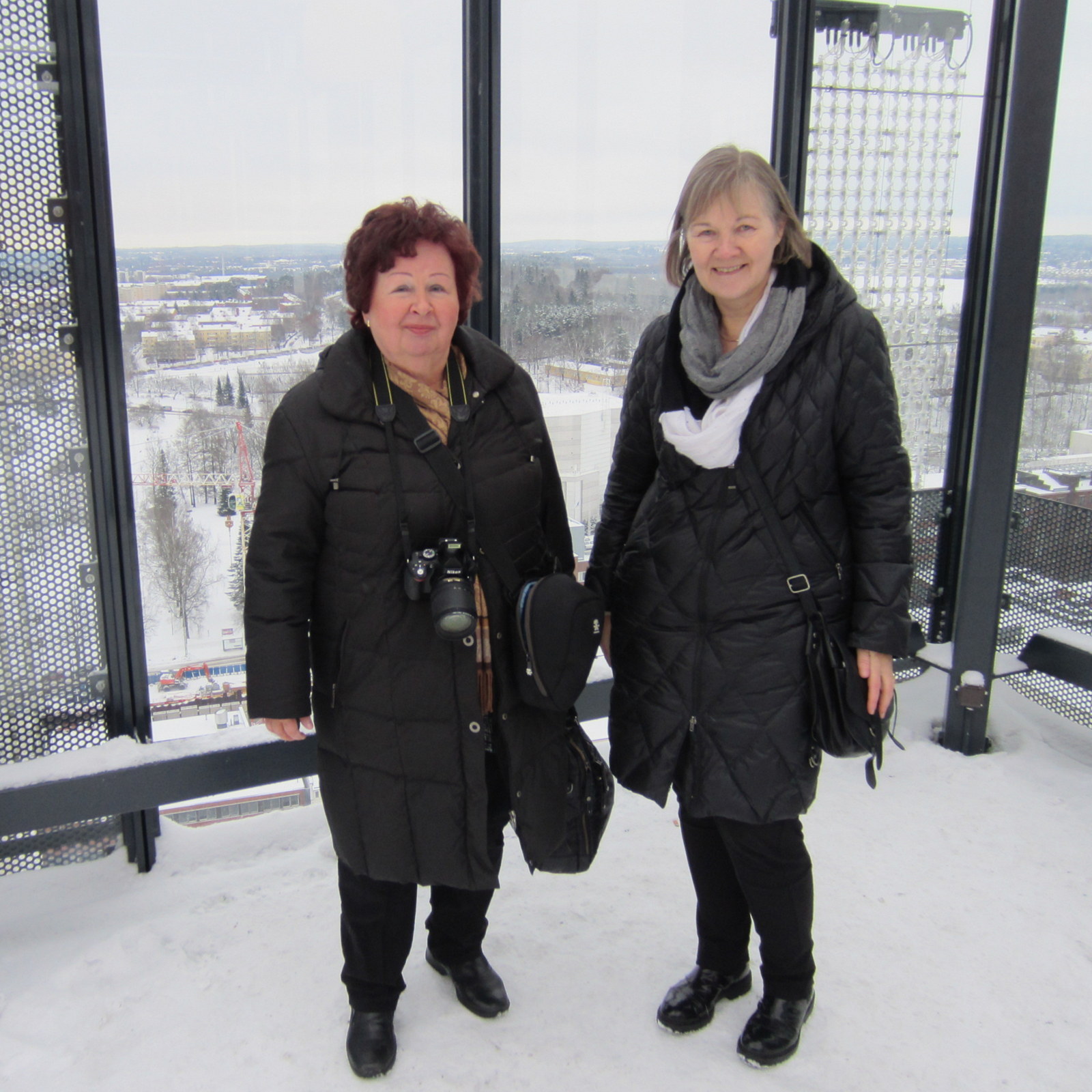 Aikamme kissakahvilassa ystäväpariskuntamme seurassa kului rattoisasti tulevista, mahdollisesti taas yhteisistäkin matkoista jutellen, ja jatkoimme sieltä sitten yhdessä matkaa varsinaiseen maailmanmatkaajien kokoukseen Grill it! -ravintolaan Tampereen uuden tornihotellin alakerrassa. Hotelliin (oikealta nimeltään Solo Sokos Hotel Torni Tampere) tutustuimme sen verran, että kävimme katsomassa Tampereen näköaloja 25. kerroksen Moro Sky Barista ja tutustumassa 25. kerroksen wc:n kristallikruunuun ennen kuin siirryimme ruokailemaan ja kokoustamaan alakerran Grill it! -ravintolaan, jossa ruoka oli oikein hyvää, mutta tarjoilu jätti vielä hiukan toivomisen varaa: ehkä lauantai-illan runsas asiakasmäärä vaikutti siihen, että astioita kerättiin pöydästä ruokalajien välissä aika hitaasti pois ja yksi jos toinen kahvi tai jälkiruoka meinasi unohtua, samoin kuin pyyntö wifi-tunnuksesta. Itse kokouksesta voit halutessasi lukea lisää Maailmanmatkaajien sivuilta.