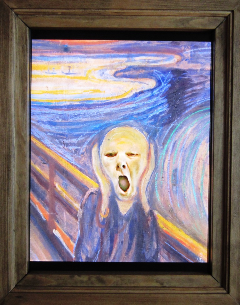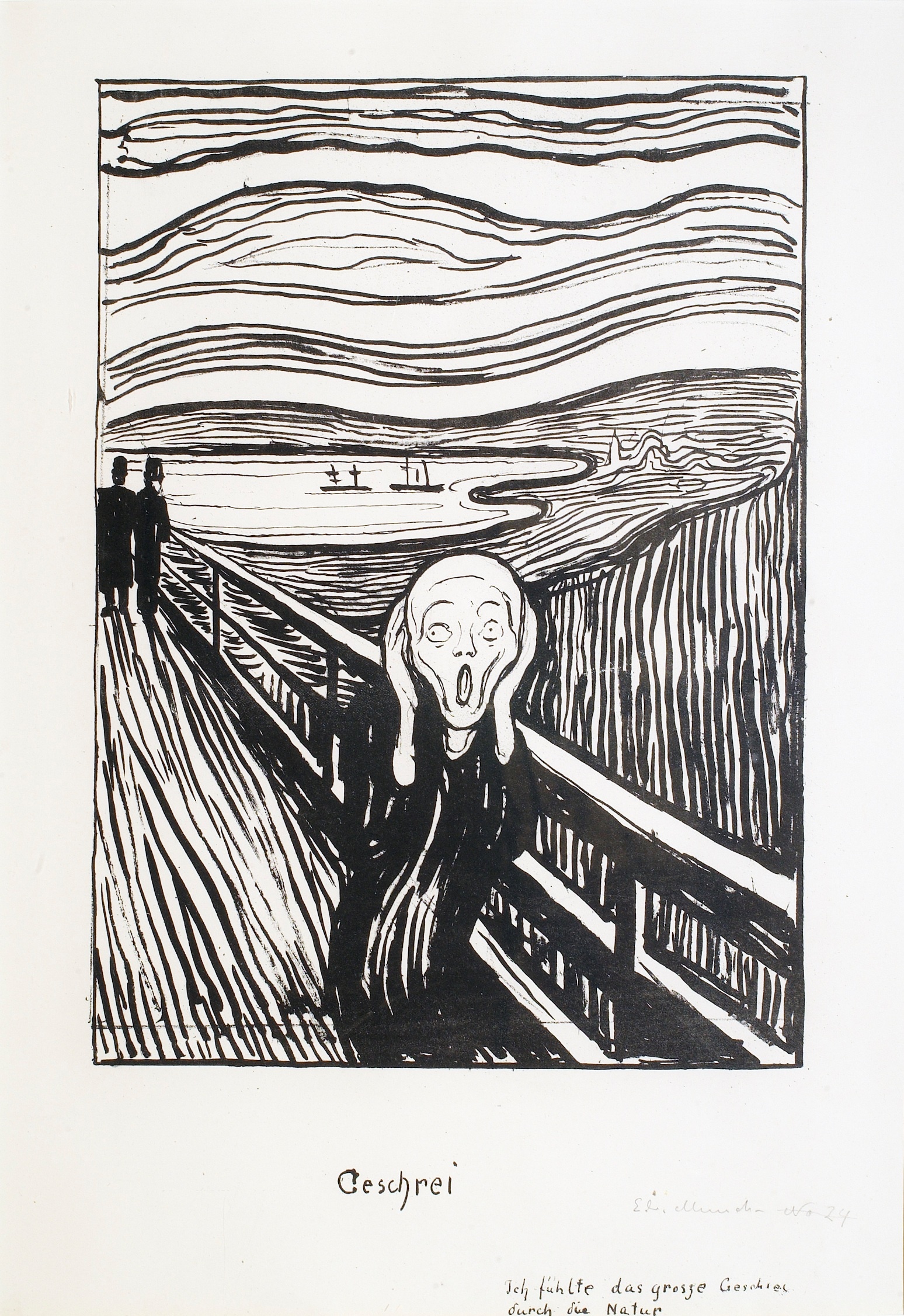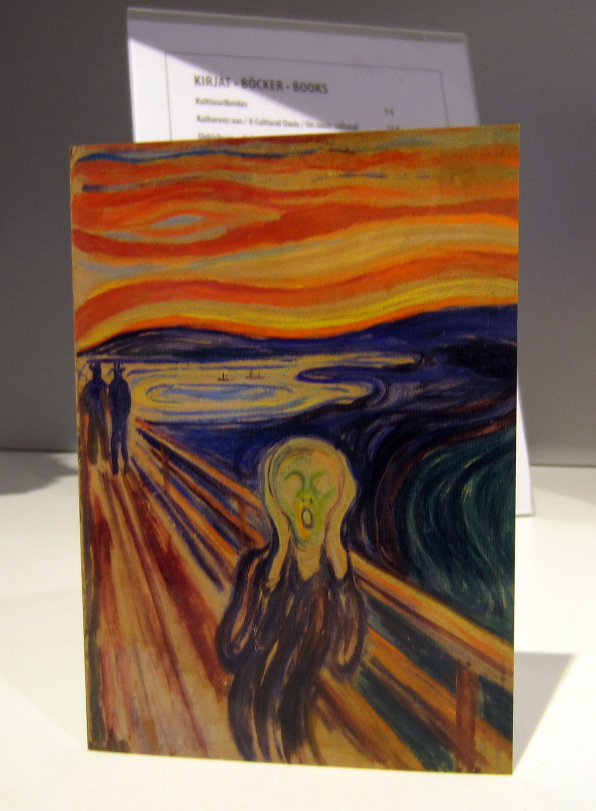 Munchin kuuluisimmasta työstä, Huudosta, oli esillä litografia – Huuto-maalauksen nähdäkseen on vierailtava Oslossa, näitä teoksia (niitä on useampia versioita) ei ole lainattu muualle enää vuosiin. Maalaus oli kuitenkin hyvin “esillä” museokaupassa, postikorttina, mikrokuituliinana, jääkaappimagneettina ja postimerkkinä, ainakin. Samoin museon toisessa päädyssä oli näyttelyvieraiden huviksi tarjolla Huuto-versio, johon saa omat kasvonsa, kun sen edessä sopivalla kohdin esitti oman huutonsa.