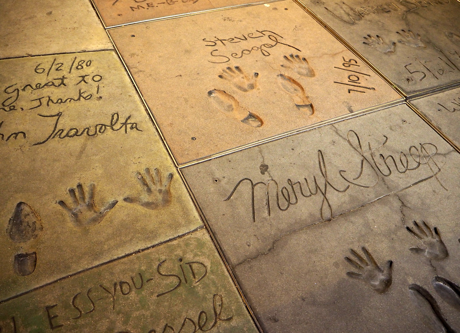 Los Angelesissa majoituimme Hollywoodin kupeeseen Hilton Garden -hotelliin, perusturistiluokkaa tämäkin: siisti huone ja kylpyhuone, tilaa kohtuullisesti ja aamiainen, jolla selviää lounaaseen. Sijainti oli loistava kävelyetäisyydellä Hollywood Boulevardilta ja jo ensimmäisenä iltana kävimmekin katsastamassa tähdet ja käden ja jalanjäljet Kiinalaisen teatterin edustalla ja Dolby-teatterin, jonka edustalle oltiin jo kasaamassa lavarakenteita viikon päästä pidettäviä Oskar-juhlia varten.