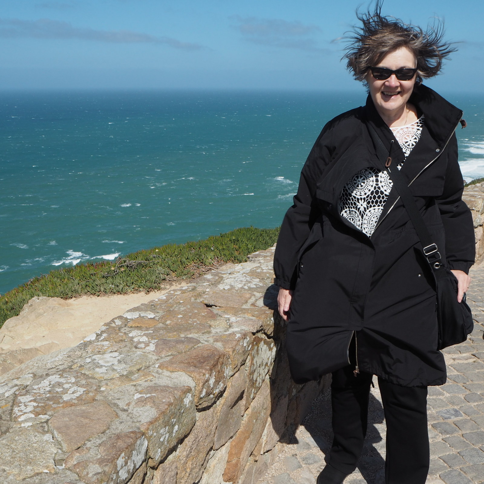 Capo da Rocalla olin käynyt isäni kanssa jo 1970-luvulla, mutta muille seurueemme jäsenille kerta oli ensimmäinen tällä Euroopan läntisimmällä niemellä. Muistomerkki ei ollut sitten 70-luvun muuttunut, mutta autot oli sentään häädetty pois muistomerkin ympäriltä. Ja tällä nimellä sitten vasta tuulikin! Kun jatkoimme Capo da Rocasta rantatietä Cascaisiin tie oli paikoitellen peittynyt hiekkaan siinä missä Suomessa sopivalla tuulella lumi nietostuu tielle.