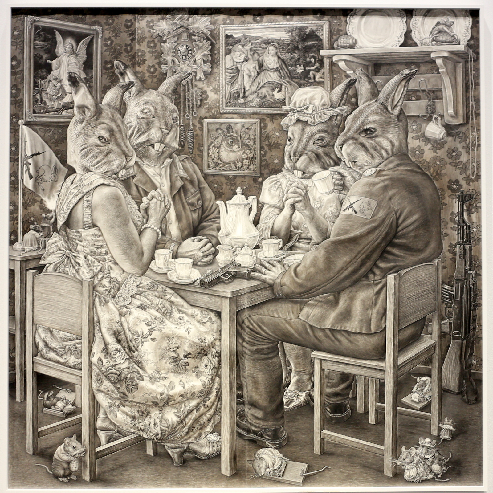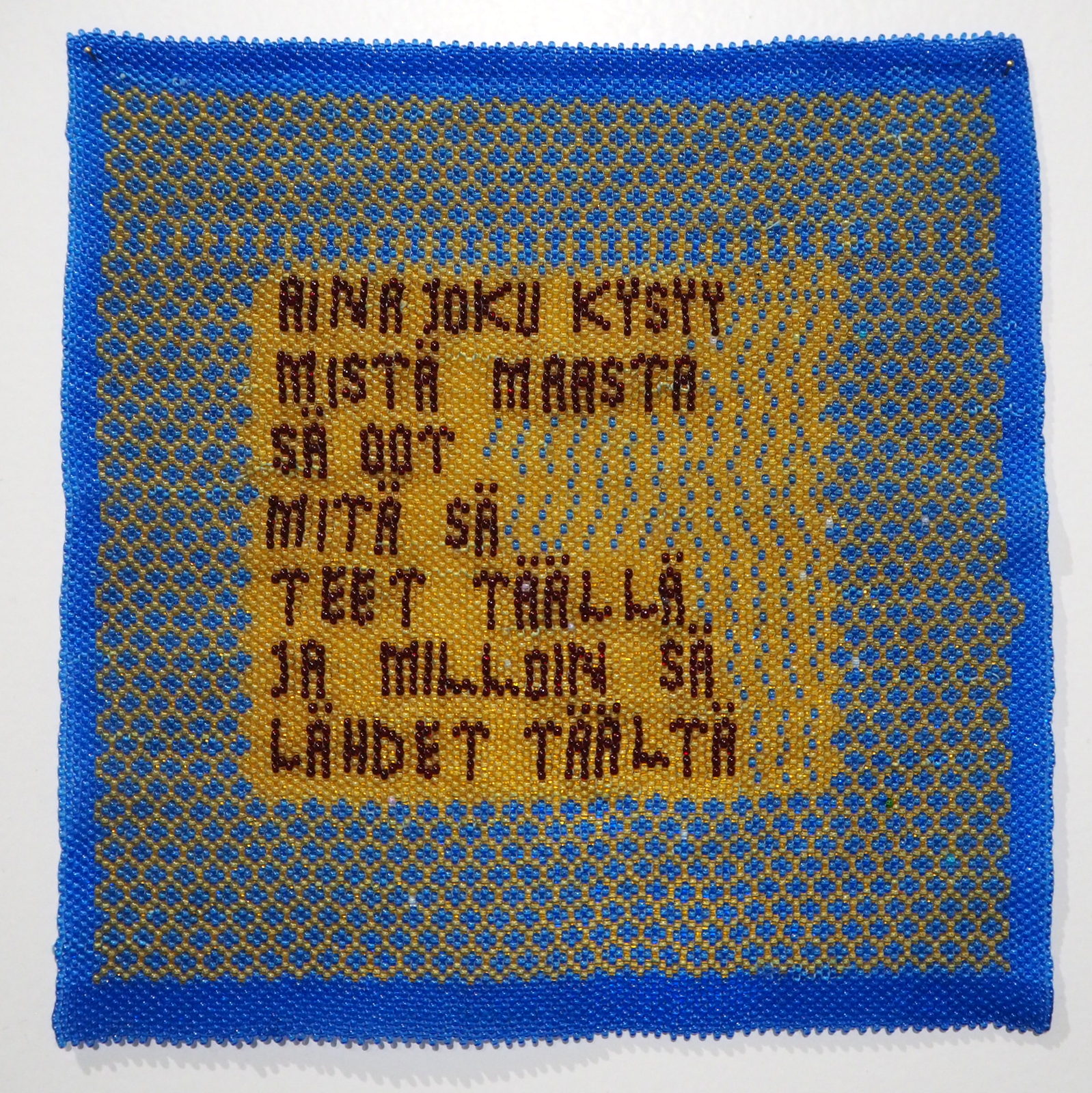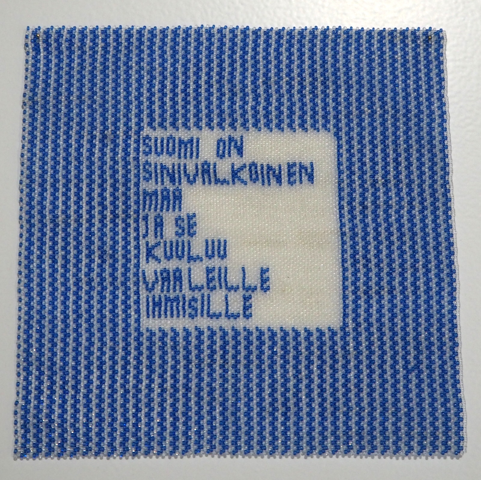 Tiina Saariston nationalismia kuvaavan työn edessä kannattaa myös viipyä pitkään, teoksessa on niin paljon hienoja yksityiskohtia, että ne eivät avaudu yhdellä vilkaisulla.