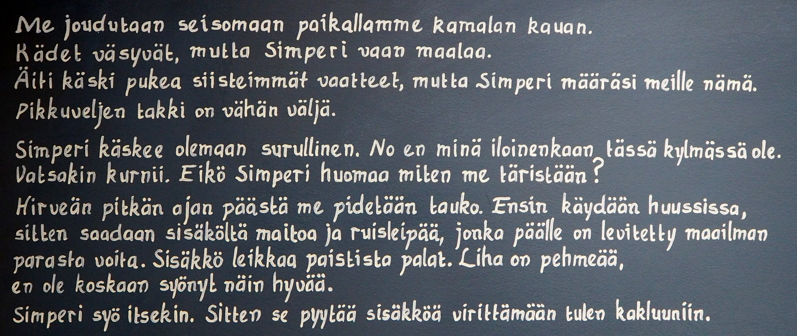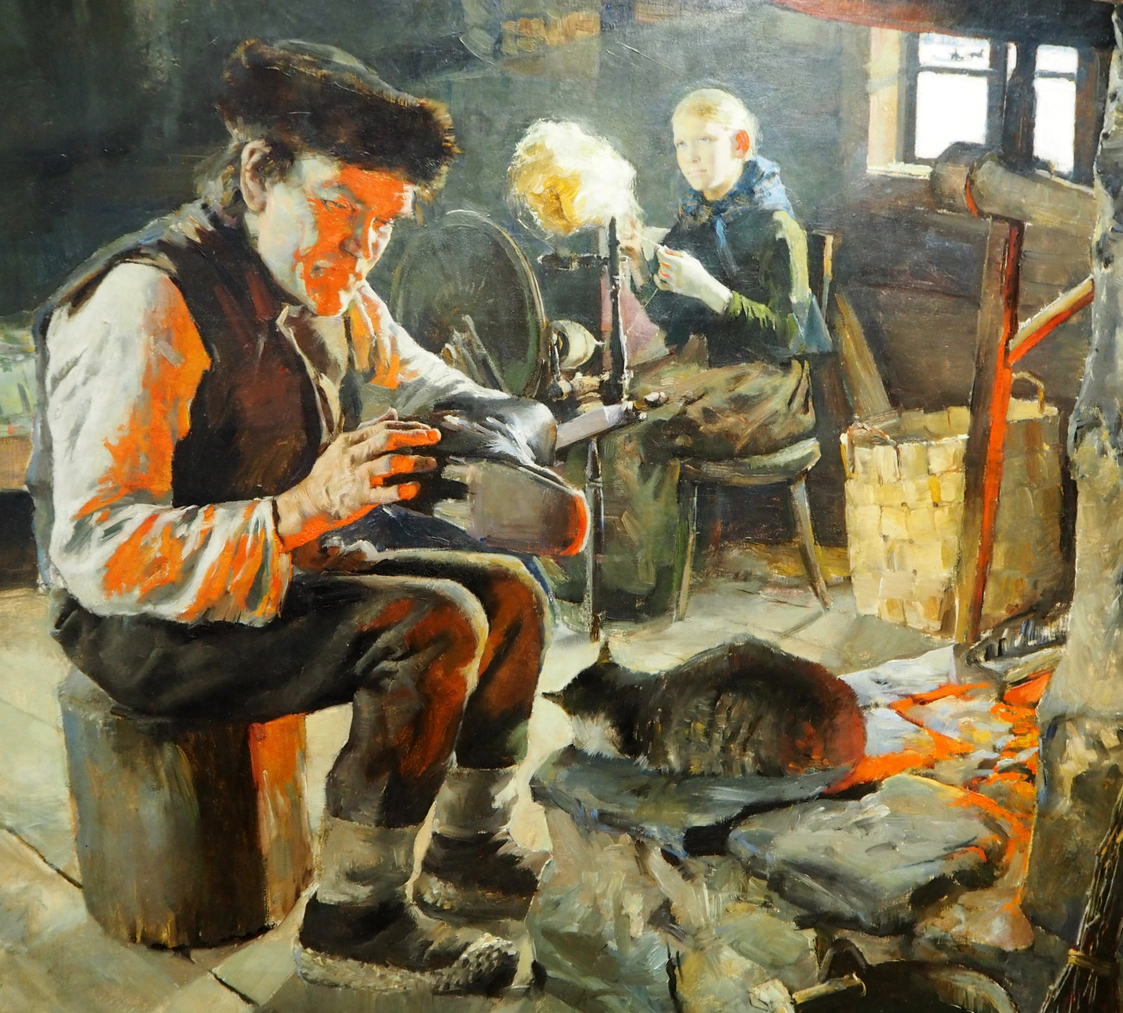 Talonpoikaiselämää teoksen kissasta lapset ovat kuulemma olleet kovin huolissaan: “Eikö se pala tuossa uunin reunalla?”