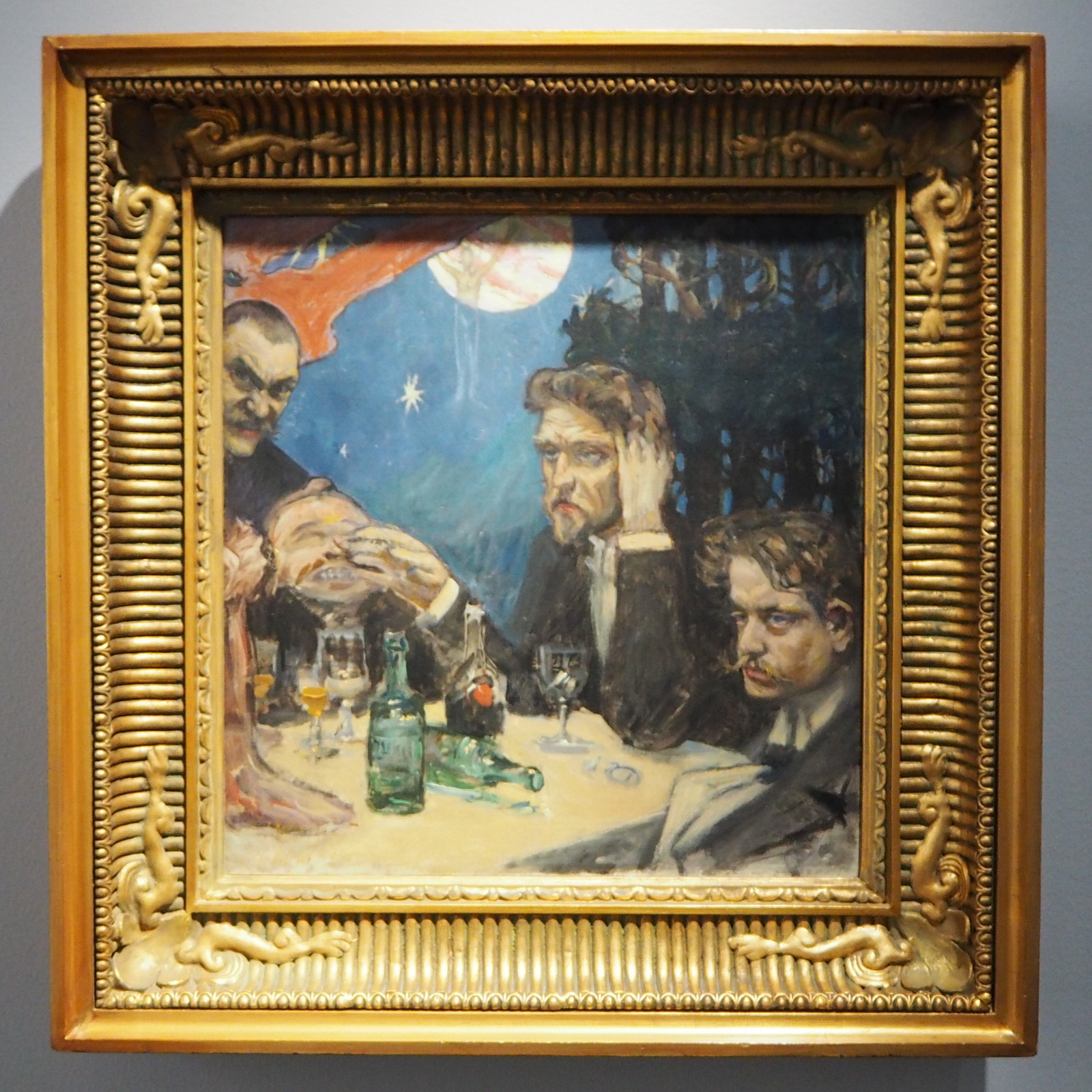 Kartanon yläkerran aulassa esillä olleista teoksista parin kohdalla kannattaa erityisesti pysähtyä. Gallen-Kallelan teos Talonpoikaiselämää on museon uusin Gallen-Kallela hankinta (173. museon kokoelmissa). Teos myytiin puolivahingossa aikoinaan Venäjälle ja löydettiin vasta äskettäin Ruotsista. Teoksen tarinan voit lukea halutessasi muutaman vuoden takaisesta Serlachiuksen lehdestä.