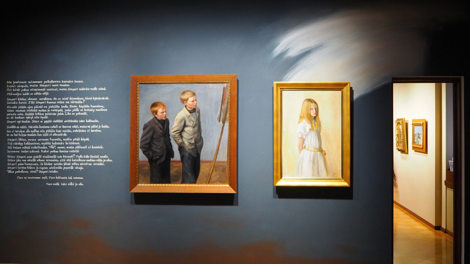 Joenniemen kartanon yläkerrassa on esillä teoksia suomalaisen taiteen kultakaudelta ja ne esitellään ihan uudella tavalla, teosten mallien näkökulmasta. Kirjailija Riikka Ala-Harja on laatinut teosten rinnalle tekstit, joissa hän kertoo mallin ajatuksia.