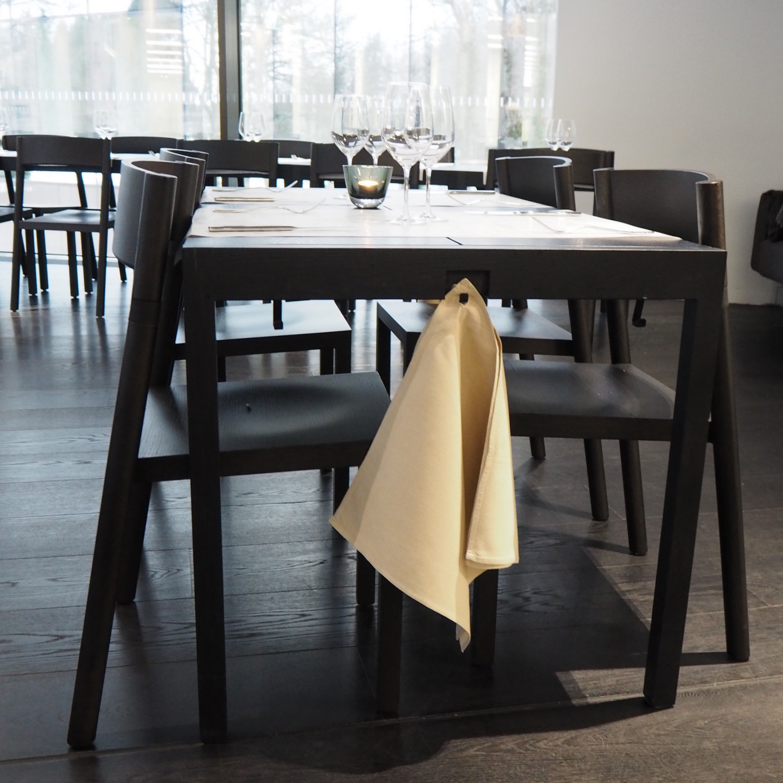 Göstassa on myös hyvä ravintola, jossa mekin söimme ensin lounaan ja myöhemmin iltapäivällä nautimme jälkiruuan ja kahvia ja teetä. Myös Gustafissa on pieni kahvila. Ravintolan tuoleihin kannattaa muuten kiinnittää huomiota, niiden vino selkäosa joustaa mukavasti niillä istuttaessa. Tuolit ovat englantilaisen Harry Owenin suunnittelemia.