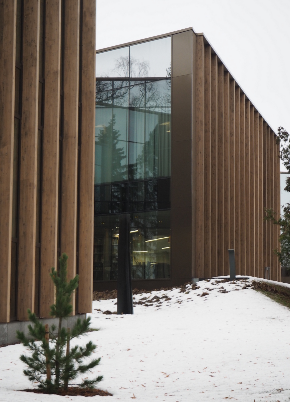 Ennen siirtymistä Gustaf-museoon Mäntän keskustaan kiertelemme talvesta huolimatta hiukan museon ulkopuolella, niin puistoon sijoitettujen veistosten kuin itse puistonkin takia. Jussi Mäntysen nuori hirvi puiden keskellä on ehkä vielä kauniimpi kuin oikea hirvi olisi.