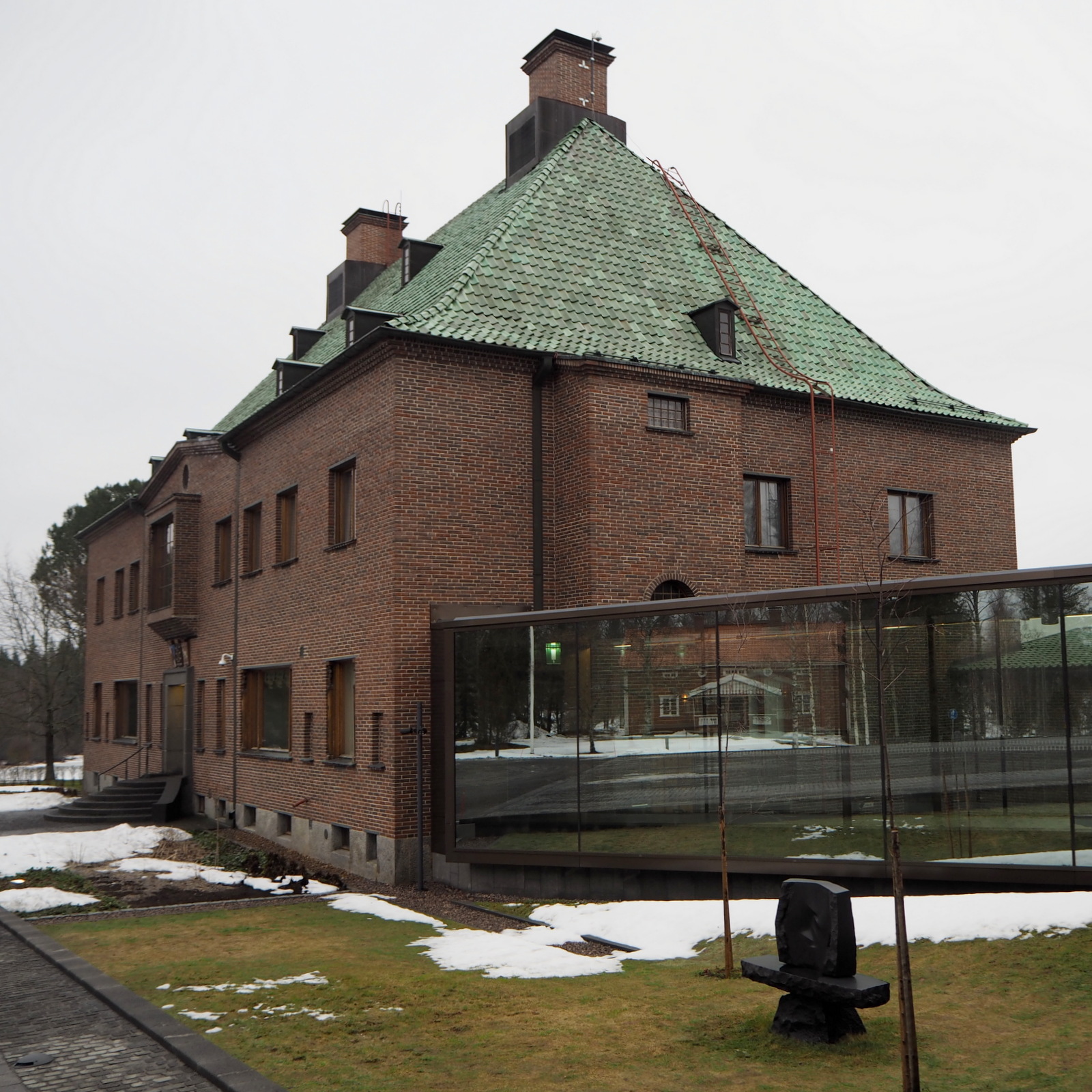 Serlachius-museot koostuvat kahdesta museosta: Göstasta, joka käsittää Joenniemen kartanon ja uuden upean viime kesänä valmistuneen museo-osan, ja Mäntän keskustassa sijaitsevasta Gustaf-museosta, joka sijoittuu Serlachiuksen vanhaan pääkonttoriin. Mietimme etukäteen missä järjestyksessä näissä kävisimme ja miten jakaisimme aikamme museoiden kesken ja päädyimme aloittamaan Göstasta ja vaihdoimme vasta 16:20 bussilla Gustafiin ja näin jälkikäteen arvioiden ainakin aikuisille kävijöille, jotka haluavat painottaa taidetta hiukan yli historian, tämä on hyvä järjestys ja hyvä ohje ajankäytölle.