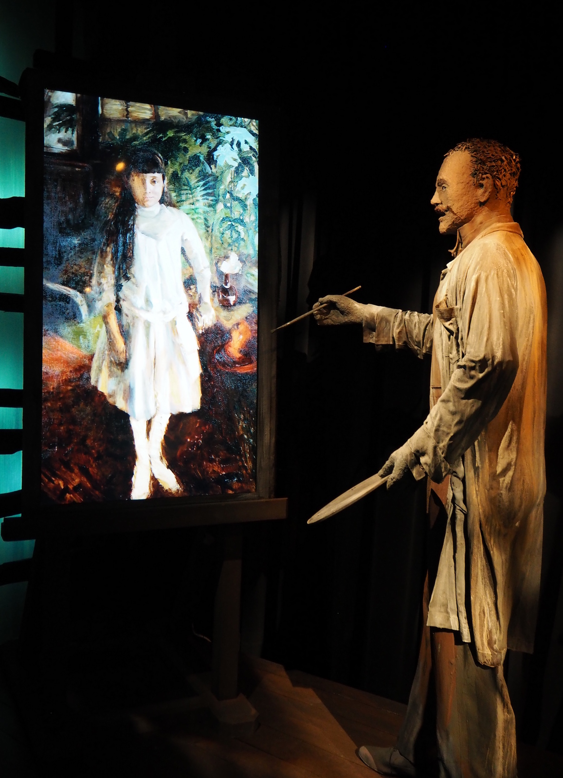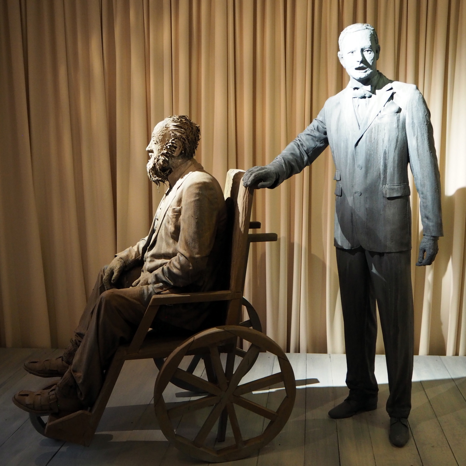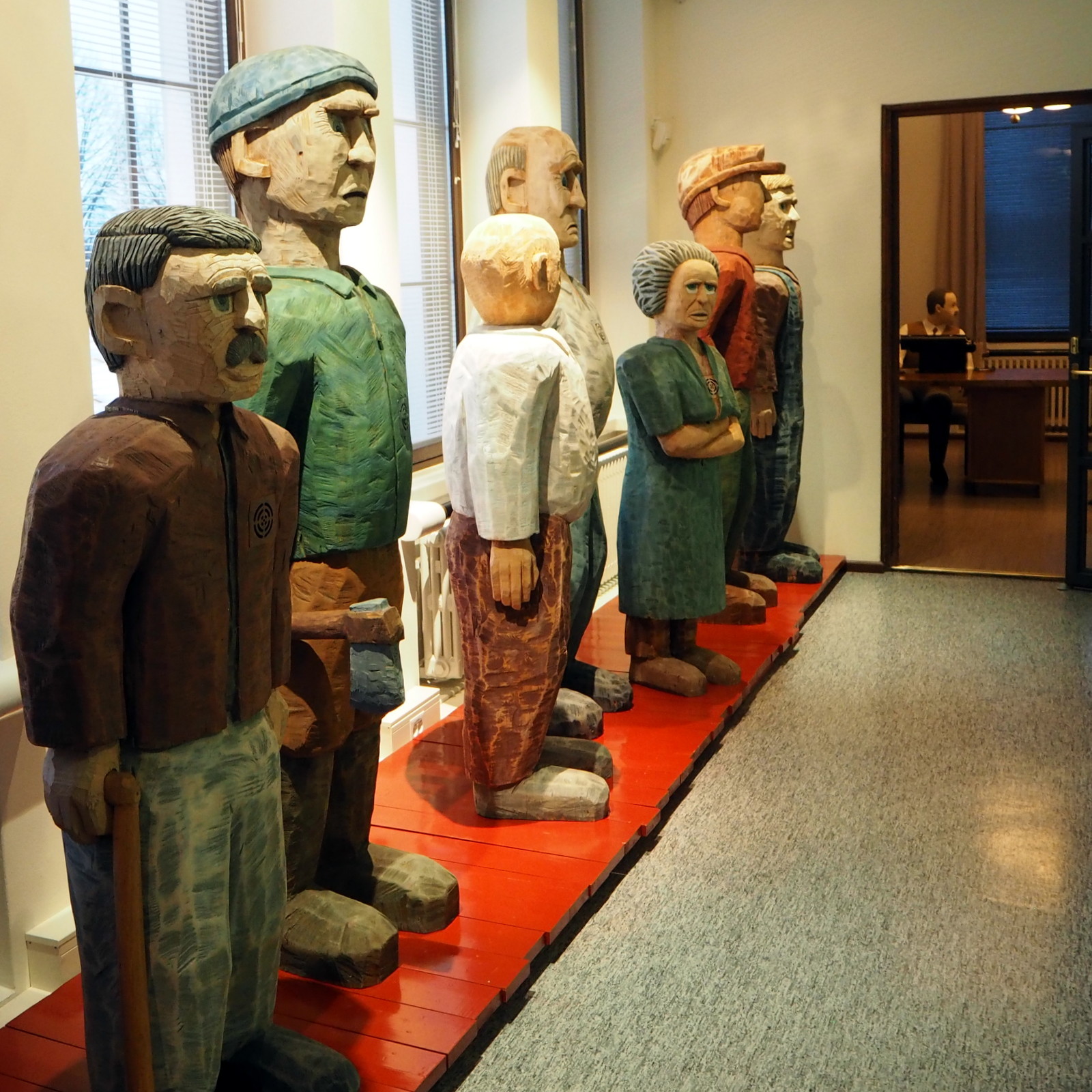 Serlachius-historiaa on tarjolla myös museon toisessa kerroksessa, jossa työntekijät, mainioina patsaina, odottavat pääsyä johtajan huoneeseen. Etenkin minulle, jonka isäkin oli ison teollisuuslaitoksen toimitusjohtaja, vaikkakin “vaan” palkkajohtaja, johtajan huone tuntuu palalta elävää historiaa. Johtajakin on läsnä, ylväänä rintakuvana.