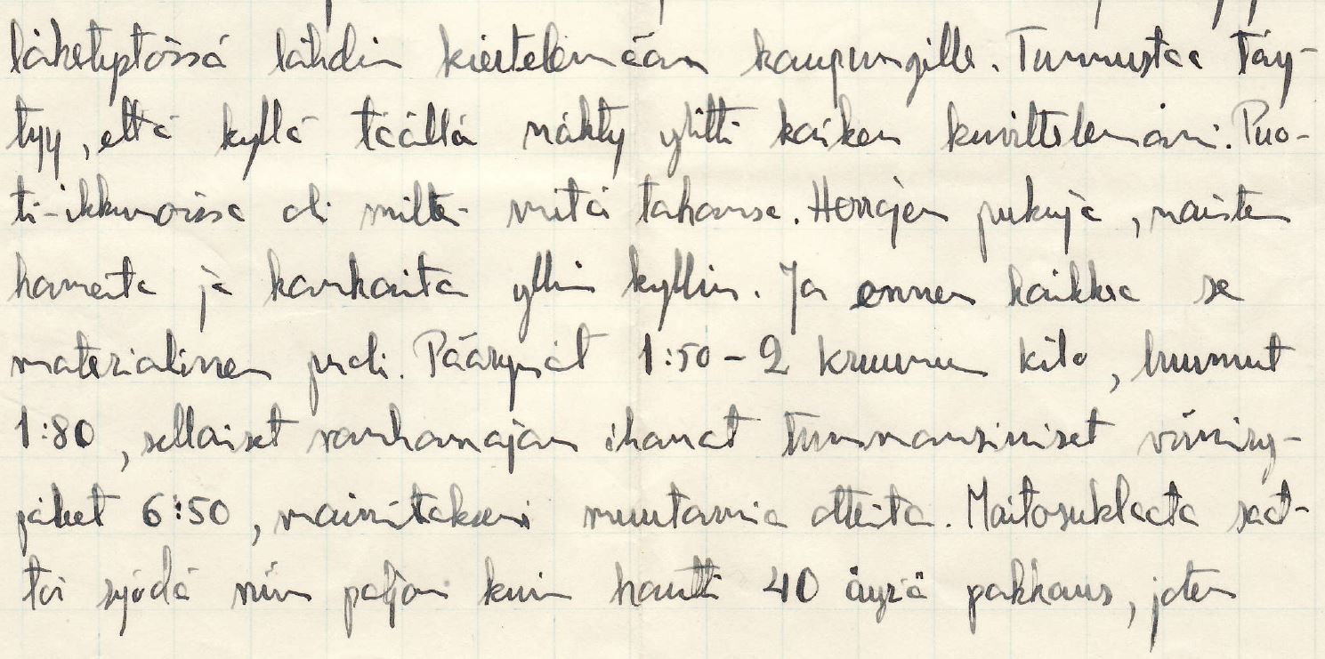 Lopuksi vielä ote isäni kirjeestä äidilleni syksyllä 1945 hänen juuri saavuttua Göteborgiin: sodanjälkeiseen Helsinkiin verrattuna Ruotsi ja Göteborg tuntui olleen paratiisi!