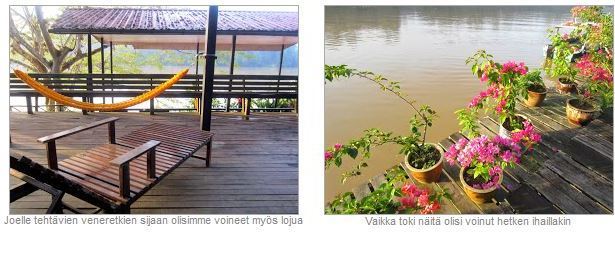 Ja tuosta käärmeestä, kun veneemme lipui tuosta alta ja opas sitten vasta kun olimme käärmeen alla suunnilleen opasti meitä, että näettekö tuon käärmeen tuossa, niin kyllä siinä hetkeksi oli sellainen olo, että ei kai se vaan tuosta tiputtaudu niskaani :-) – mutta ei tiputtautunut!