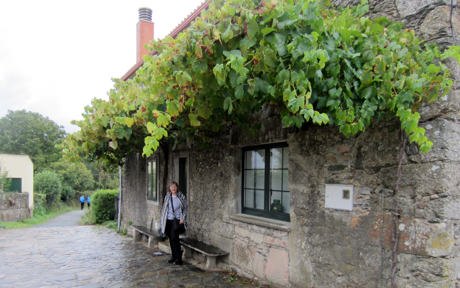Espanjassa olemme olleet vähän sen eri laidoilla moneenkin otteeseen, mutta ehkä yksi hauskimpia pieniä juttuja liittyy viime syksyiseen kevytversioomme Pyhän Jaakon tiestä. Olimme siis bussimatkalla, joka seuraili pyhiinvaeltajien reittiä, mutta kävelimme päivittäin 5-7 kilometriä. Parina ensimmäisenä päivänä matkanjärjestäjän bussi oli aina sellaisessa kohdassa, että käveltyämme käveltäväksi tarkoitetun osuuden näimme sen helposti ja löysimme siis takaisin bussiin. Yhtenä päivänä kuitenkin harhauduimme kuvaamaan kivan näköistä köynnöskatosta ja jatkoimme siinä matkaa seuraten paria muuta kävelijää hyvin merkittyä polkua pitkin – emmekä huomanneet lähellä ollutta bussia! Jonkin ajan kuluttua, etenkin kun edessä oli pitkä ylämäki, ja väsymys alkoi jo vähän painaa, aloimme jo miettiä, että aika pitkä tämä päivämatka tänään onkin.
