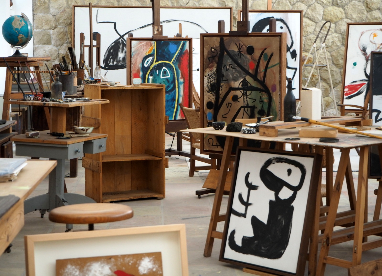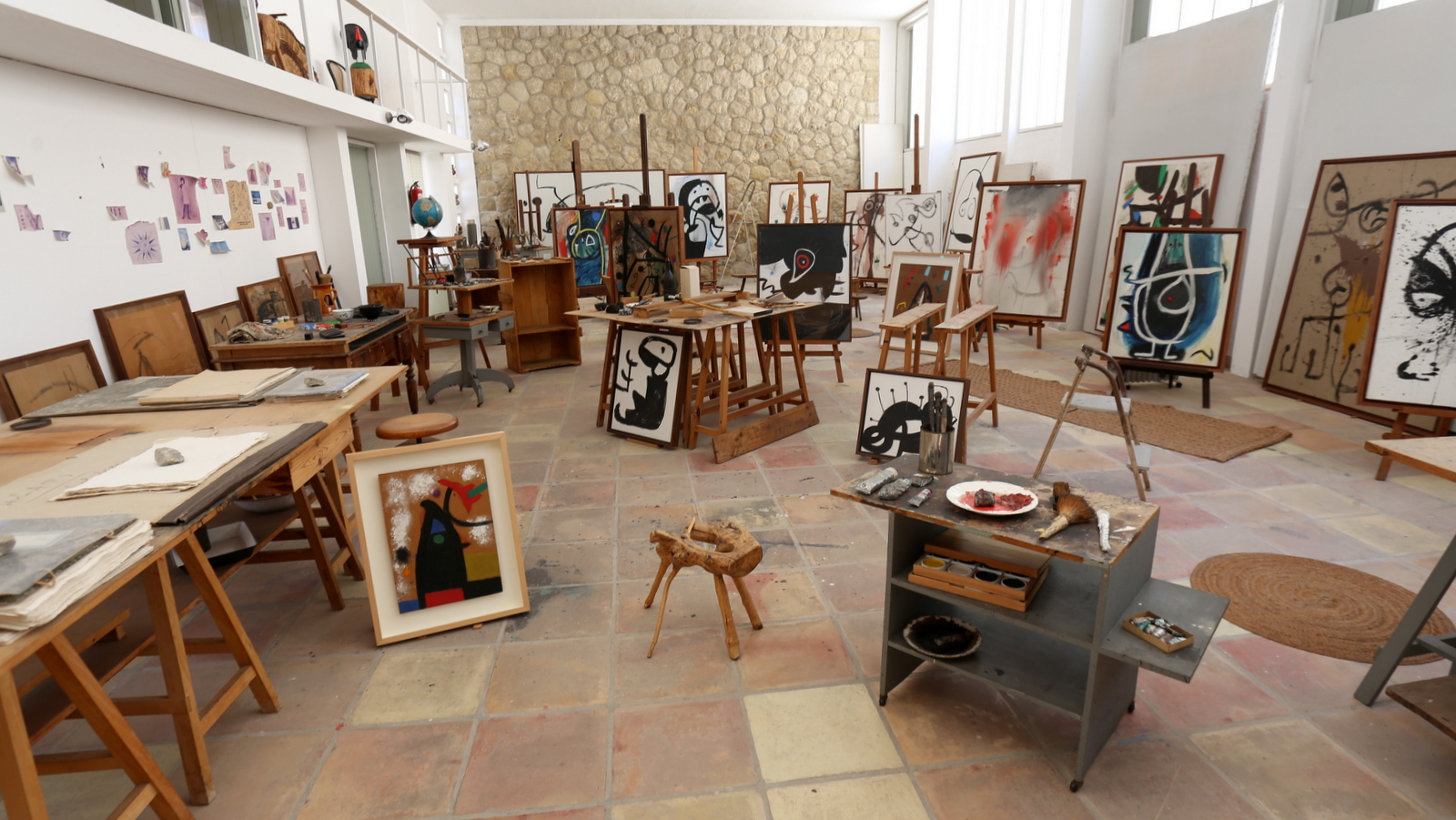 Ateljeen takana olevassa toisessa työtilassa on lisää taiteilijan työssään käyttämää esineistöä ja huoneiden valkoisille seinille tehtyjä hahmotelmia. Ehkä huoneiden seinät ajoittain maalattiin uudelleen valkoisiksi, että niille saattoi taas uudelleen luonnostella?