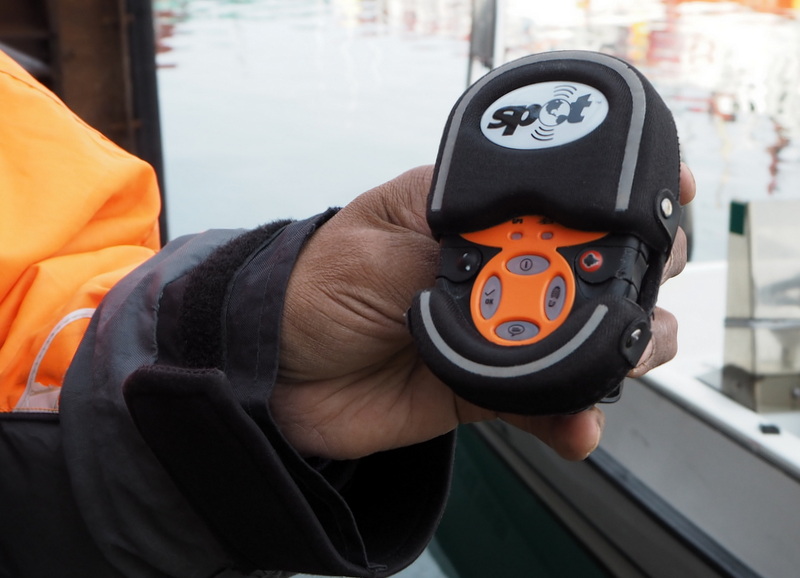 Aamulla otimme taksin Nuukin satamaan. Kävelläkin olisi voinut, mutta lähtö oli jo kello 8 aamulla, joten ajattelimme, että löydämme varmimmin ajoissa perille taksilla. Taksi jättää meidät punaisen kontin ja roskiksen viereen ja näyttää korkealta laiturilta alas meneviä portaita, että tässä. Mitään venettä ei vielä näy, ei myöskään muita mahdollisia lähtijöitä. Hetken päästä paikalle saapuu pieni avovene, jonka kuljettaja nousee laiturille, avaa punaisen kontin ja alkaa valitsemaan meille sopivia lämpöhaalareita. Pujottaudumme niihin ja kuljettaja esittelee meille oranssin turvalaitteen, jonka avulla toimisto kuulemma seuraa päivän mittaa etenemistämme ja tässä, kumisen suojan alla on nappi, jonka avulla voi tehdä hälytyksen. Ja veneessä on kuulemma kaksikerroksinen pohja, joten jos vaikka törmäisimme jäävuoreen tai johonkin, niin tämä kelluu. Lopuksi kapteeni vielä tarkistaa, että eihän meillä ole ongelmia selän tai jalkojen kanssa, sillä matkasta voi tulla kuoppainen. Lähdemme matkaan, vain me kaksi, ja kapteenimme Josef, joka myöhemmin päivän mittaan kertoo olleensa pitkään sosiaalityöntekijä, mutta nyttemmin tekee kesäisin mieluummin näitä ulkoilmatöitä ja joitakin koulutuksia talvisin.