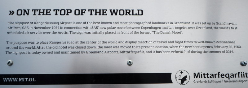 Nämä viitat kertovat osaltaan Kangerlussuaqin historiaa: syksyllä 1954 SAS aloitti lennot Kööpenhaminan ja Los Angelesin välillä Grönlannin kautta ensimmäisenä kaupallisena yhtiönä maailmassa. Silloin ajatuksena oli, että Kangerlussuaqista muodostuisi keskeinen lentokenttä maailman laajuisesti, mutta sittemmin lentokoneiden kehitys ajoi Kangerlussuaqin ohi ja nykyisin kentältä pääsee ulkomaaille vain Tanskaan.