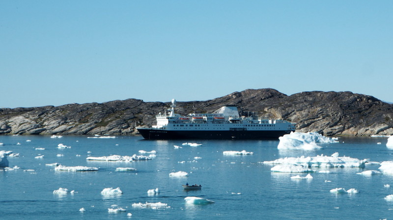 Grönlantiin voi myös tutustua risteilyllä ja erityisesti Ilulissatissa näimmekin useita sinne ainakin päiväksi poikkeavia risteilyaluksia. Suomesta ainakin Albatros-matkatoimisto tarjosi tällaista, hinta oli muistaakseni alkaen jotain 4 500 euroa per henkilö, mutta sillä olisi nähnyt Grönlantia laajemminkin. Kunnollinen hytti olisi luultavasti vielä nostanut tuota alkaen-hintaa. Monet risteilyt ovat 10-15 päivän mittaisia.