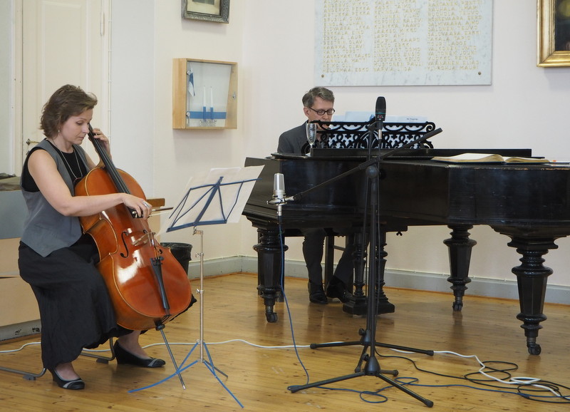 Koululla meille esiintyi myös Esko Alanen, joka esitti sellisti Eija Huhtalan kanssa sävellyksensä Der Neugieriger. Uteliaitahan me kaikki olimme, 40 vuotta sitten ja edelleen.