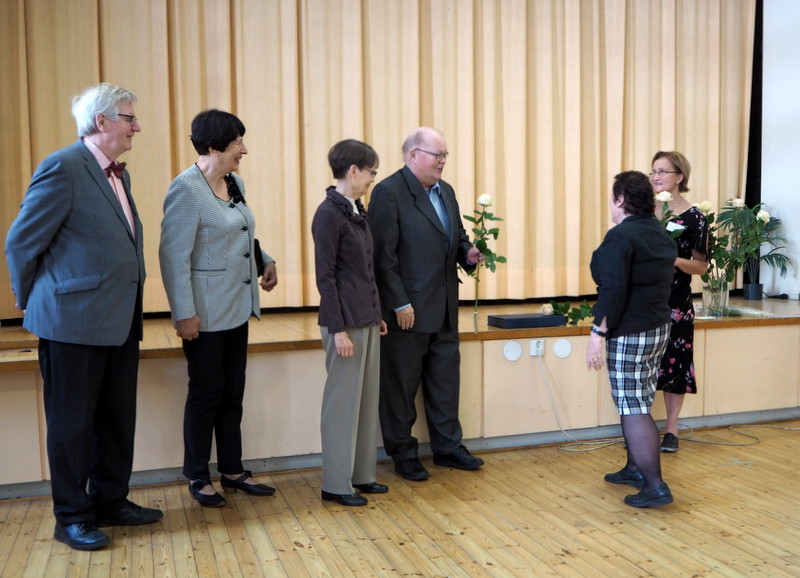 Muutama vanha opettajammekin kunnioitti tilaisuuttamme osallistumalla siihen – ja me kiitimme heitä valkoisin ruusuin.