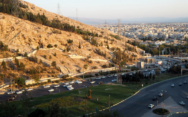 Teheranissa kävimme Hiltusen patsaalla, Isfahanissa illallisella Abbasi- hotellilla ja Shirazissa aloitimme vapaa-iltamme ottamalla auringon laskiessa taksin kaupungin uudelle ykköshotellille, Shiraz-hotellille. Nousimme hotellin 6. kerroksen kahvilaan, josta on hieno näkymä kaupungin ylle ja katsoimme miten laskeva aurinko kultasi talojen seinät. Ylhäältä näki myös hienosti liikenteenjakajassa olevan riikinkukkokoristeen.