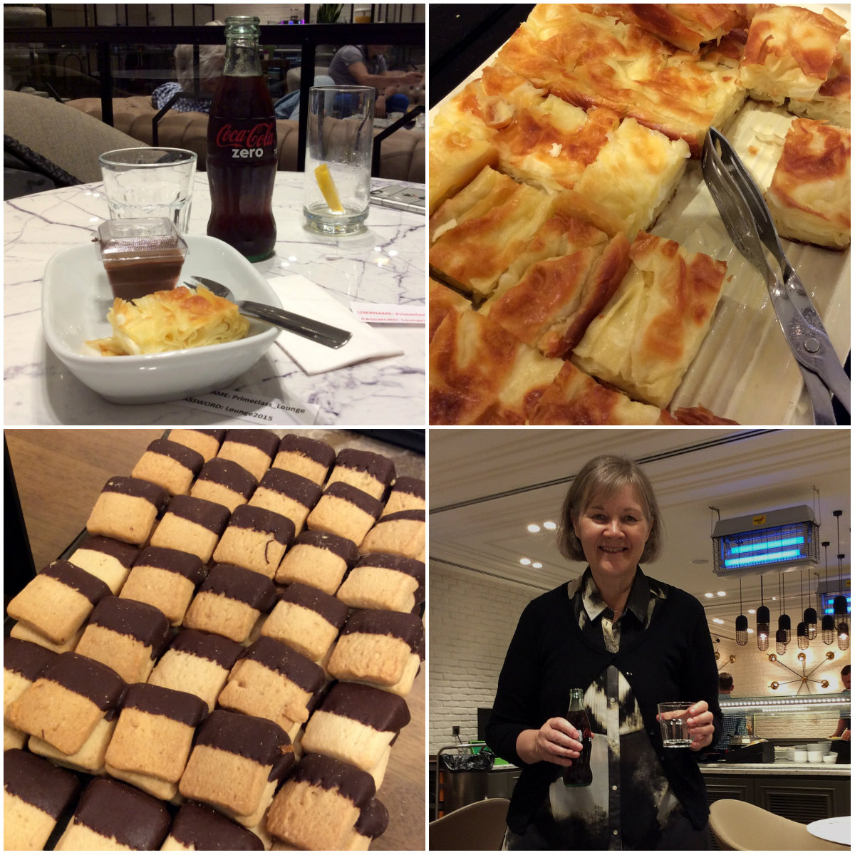 Diners-kortilla pääsee maailman lentokentillä tiettyihin loungeihin, Atatürkin kentällä Food Courtin alla olevaan Prime Class CIP Loungeen. Ei ehkä kentän loistokkain lounge, mutta ainakin meille se tarjosi ihan riittävän valikoiman pientä suolaista ja pientä makeaa ja juomia, alkoholilla ja ilman. Ja netti toimi moitteettomasti. Sen kummempia elämyksiä emme kaivanneet ja loungessa oli hyvin tilaa ja hyvin rauhallista.